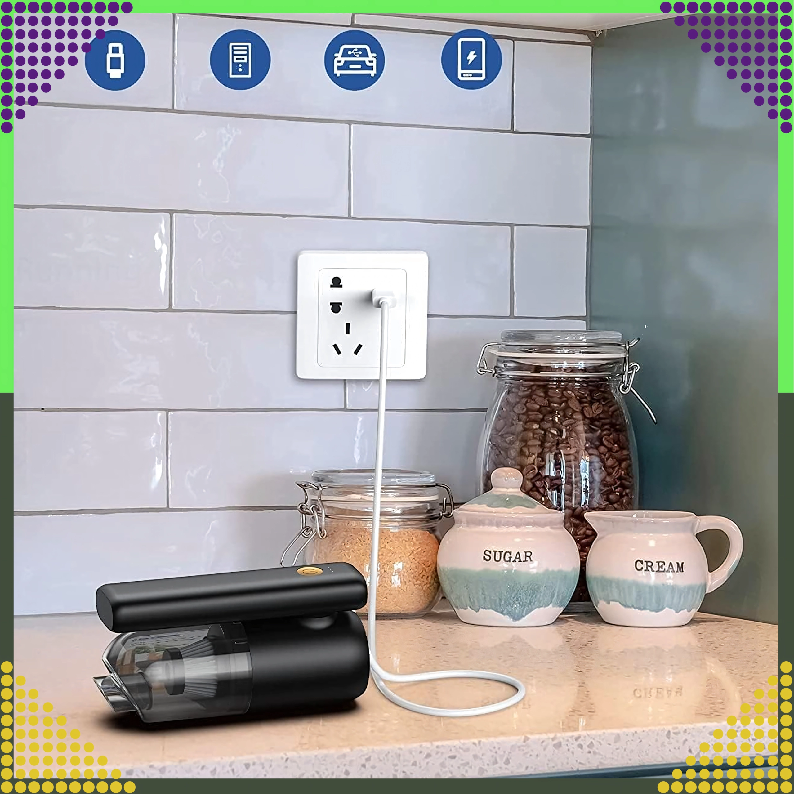 Kompakt og kraftfuld 2‑i‑1 håndstøvsuger til bil og hjem, der kombinerer trådløs brug, stærk sugeevne og blæsefunktion i én enhed. Takket være HEPA‑filter opfanges effektivt støv, pollen og fine partikler, mens LED‑belysning hjælper dig med at se på mørke steder. Ideel til hurtigt at fjerne sand, støv, krummer og dyrehår i bilen, på bordet eller omkring tastaturet.