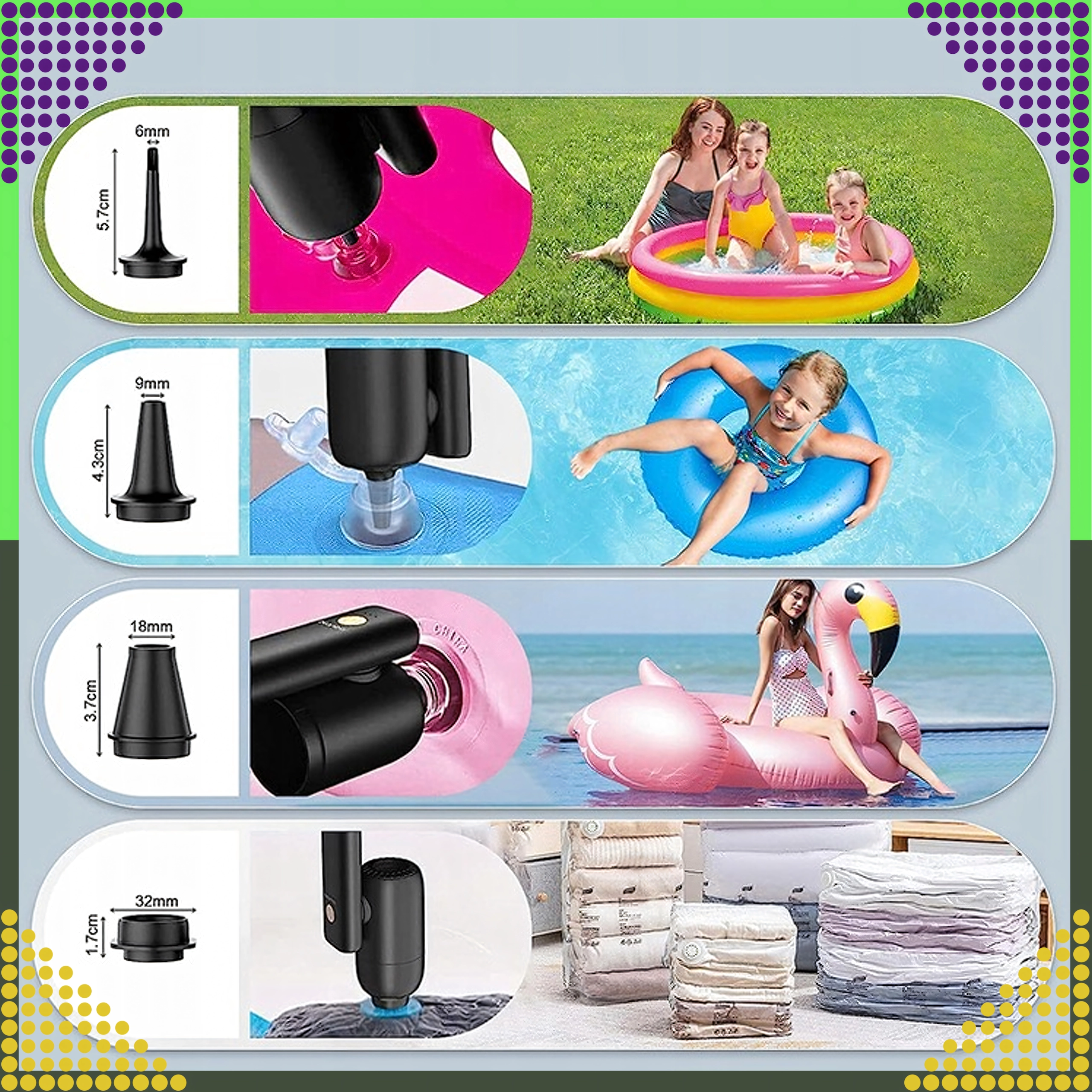 - sprækkemundstykke, børstetilbehør, blæsedyser