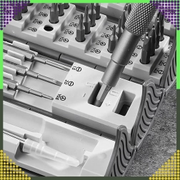 Oplev maksimal komfort og alsidighed med sættet af skruetrækkere og bits 128 i 1. Takket være magnetiske spidser, ergonomiske greb og et bredt udvalg af bits er det ideelt til reparation af elektronik, smartphones, bærbare computere, briller og fine mekaniske enheder.