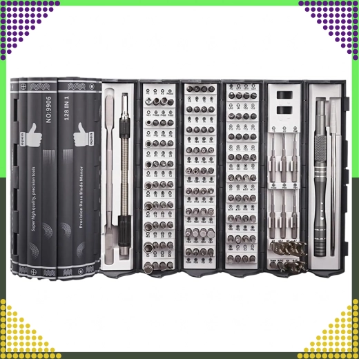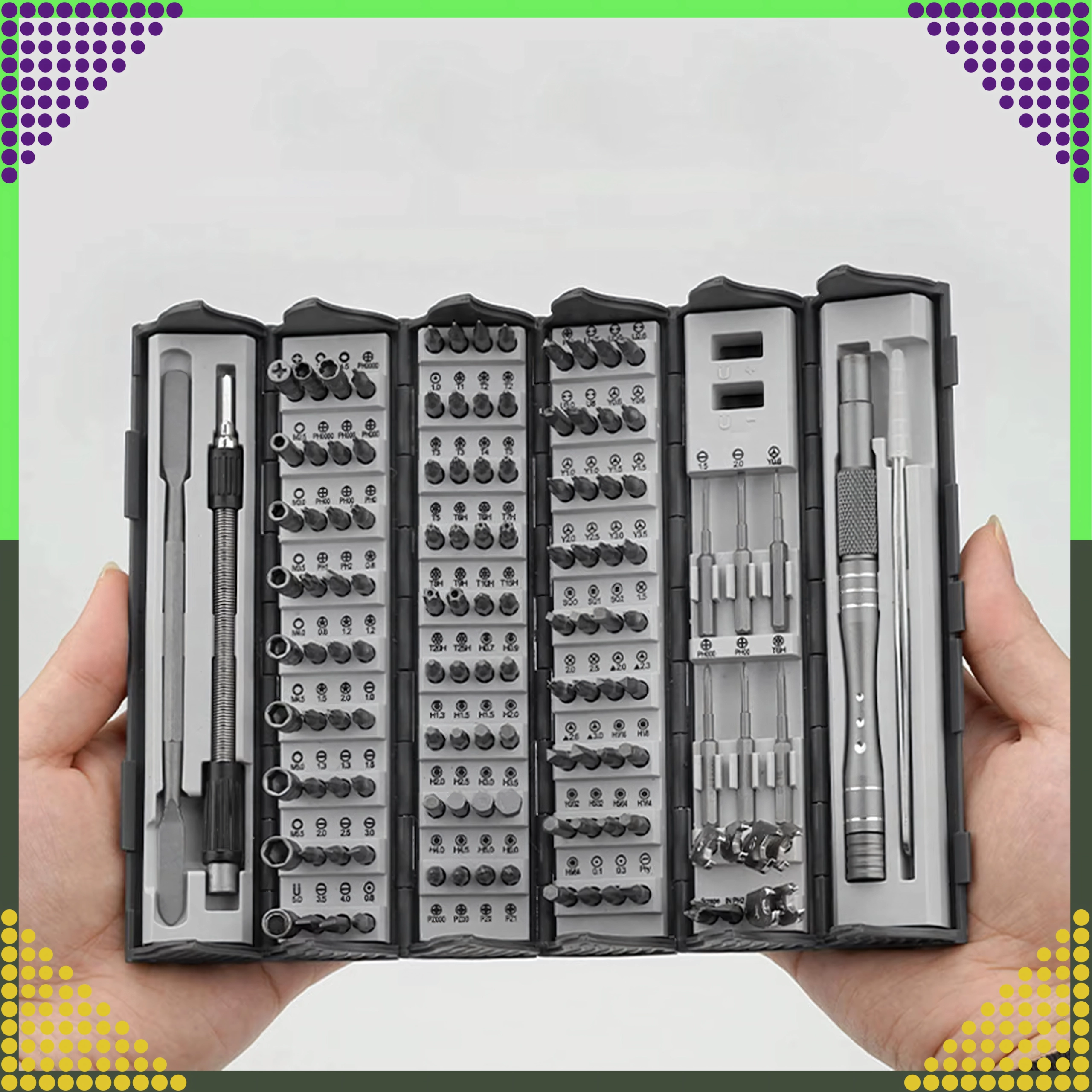 Dette universelle værktøjssæt 128 i 1 er et fremragende valg til både professionelle værksteder og hjemmearbejdspladser. Magnetiske bits holder skruerne sikkert, fremskynder arbejdet og mindsker risikoen for at miste dem. Kvalitetsstål sikrer modstandsdygtighed mod slid og korrosion, mens skridsikre håndtag giver komfort ved langvarig brug.