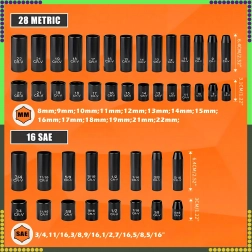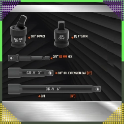 Dette alsidige sæt slagtopnøgler 3/8'' er designet til mekanikere, reparatører og krævende hobbybrugere. Det kombinerer metriske og SAE-størrelser, så du let kan servicere både europæiske og amerikanske maskiner. Den 6-kantede profil sikrer fast kontakt med bolten og mindsker risikoen for afrunding.