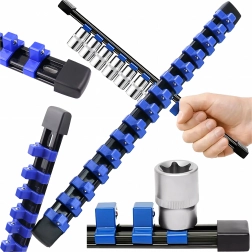Professionel liste til 3/8" toppe hjælper med at holde orden i værkstedet og på farten. Takket være den robuste metalbase og de stærke plastklips har du altid dine toppe ved hånden og sikkert fastgjort. Kompakte mål og lav vægt gør det nemt at bære og opbevare i værktøjskufferten.