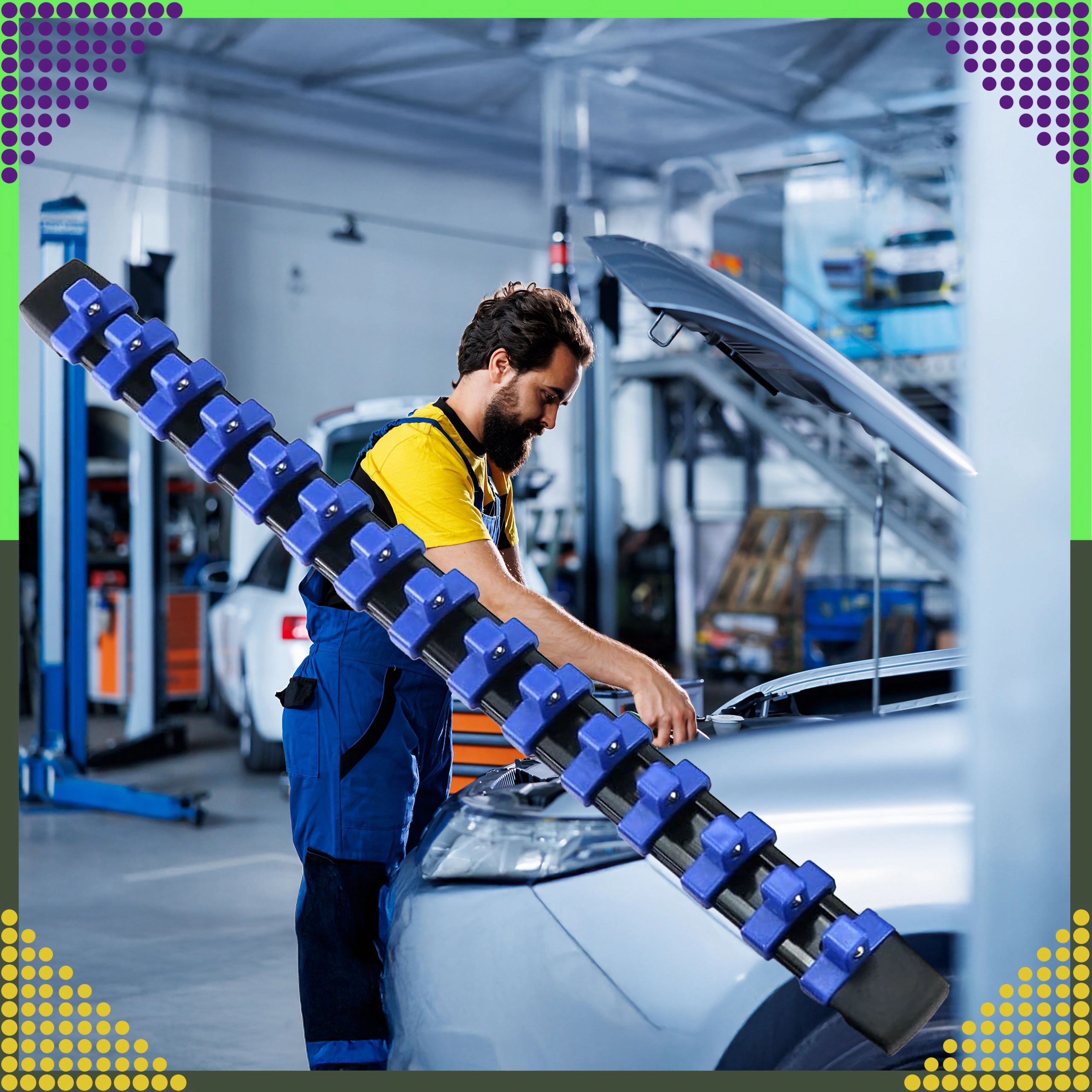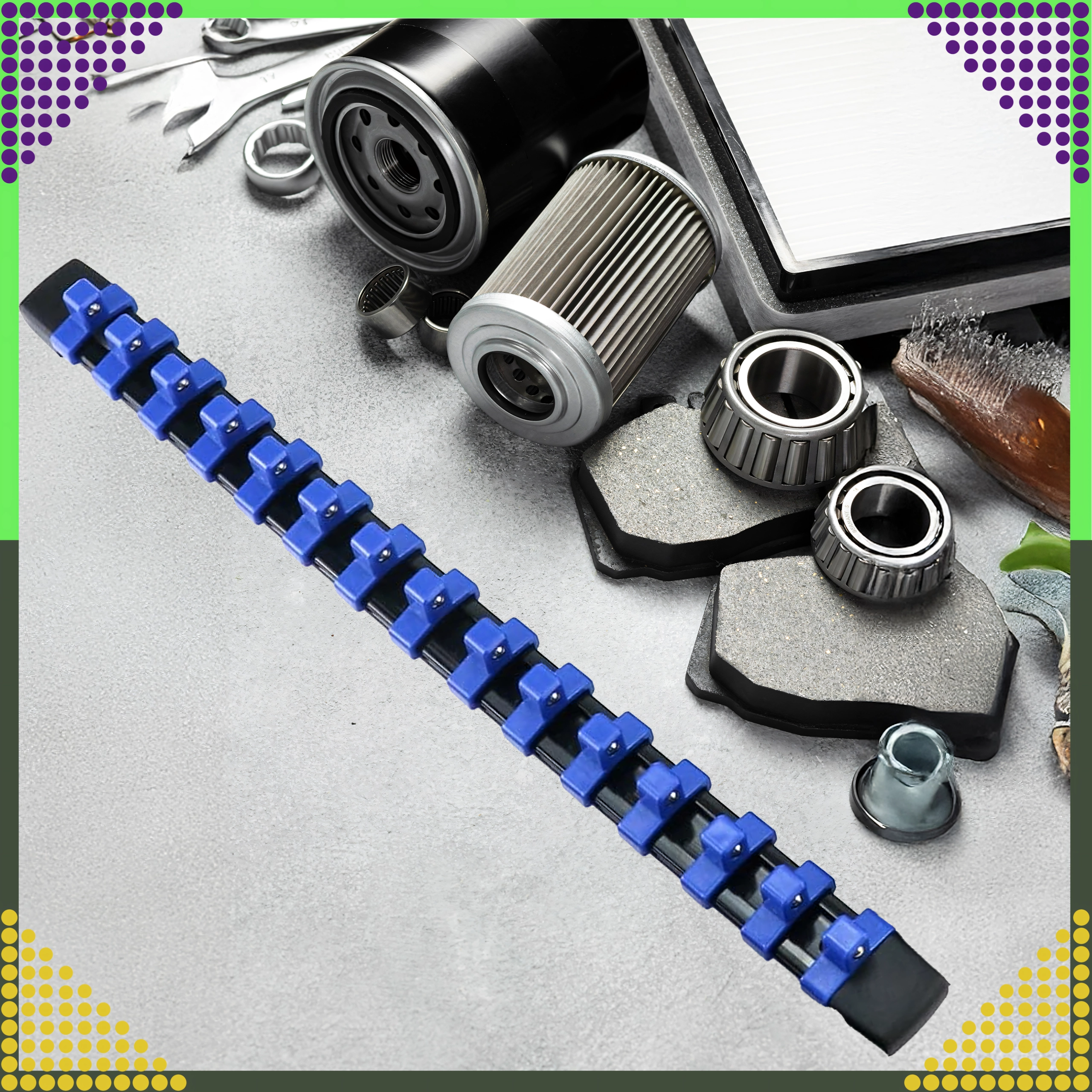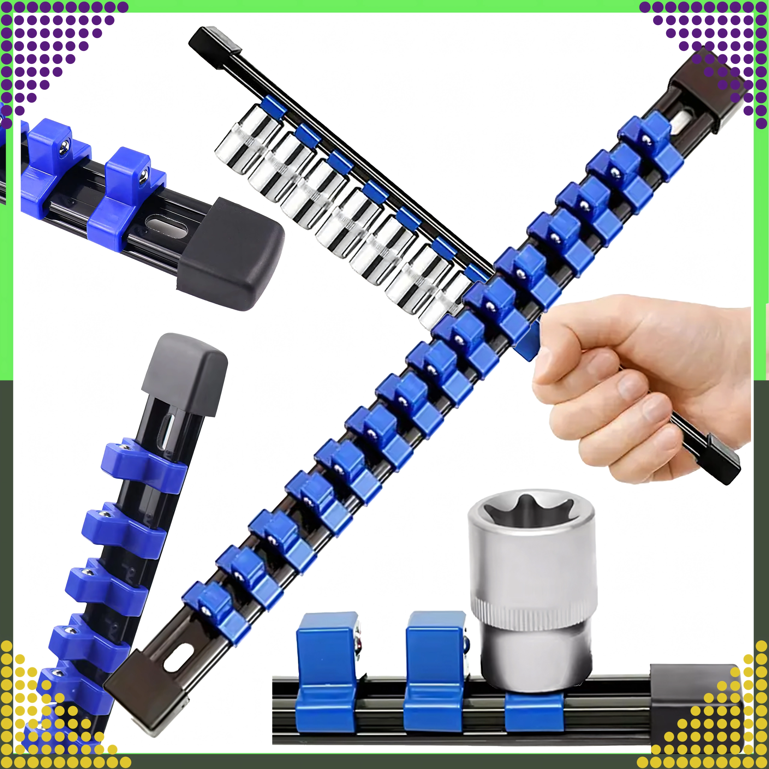 Organisatoren er ideel til mekanikere, gør-det-selv-folk og serviceteknikere, der kræver hurtig orientering og pålidelig fastgørelse af værktøjet. De justerbare klips gør det nemt at ændre afstanden efter toppenes størrelse.