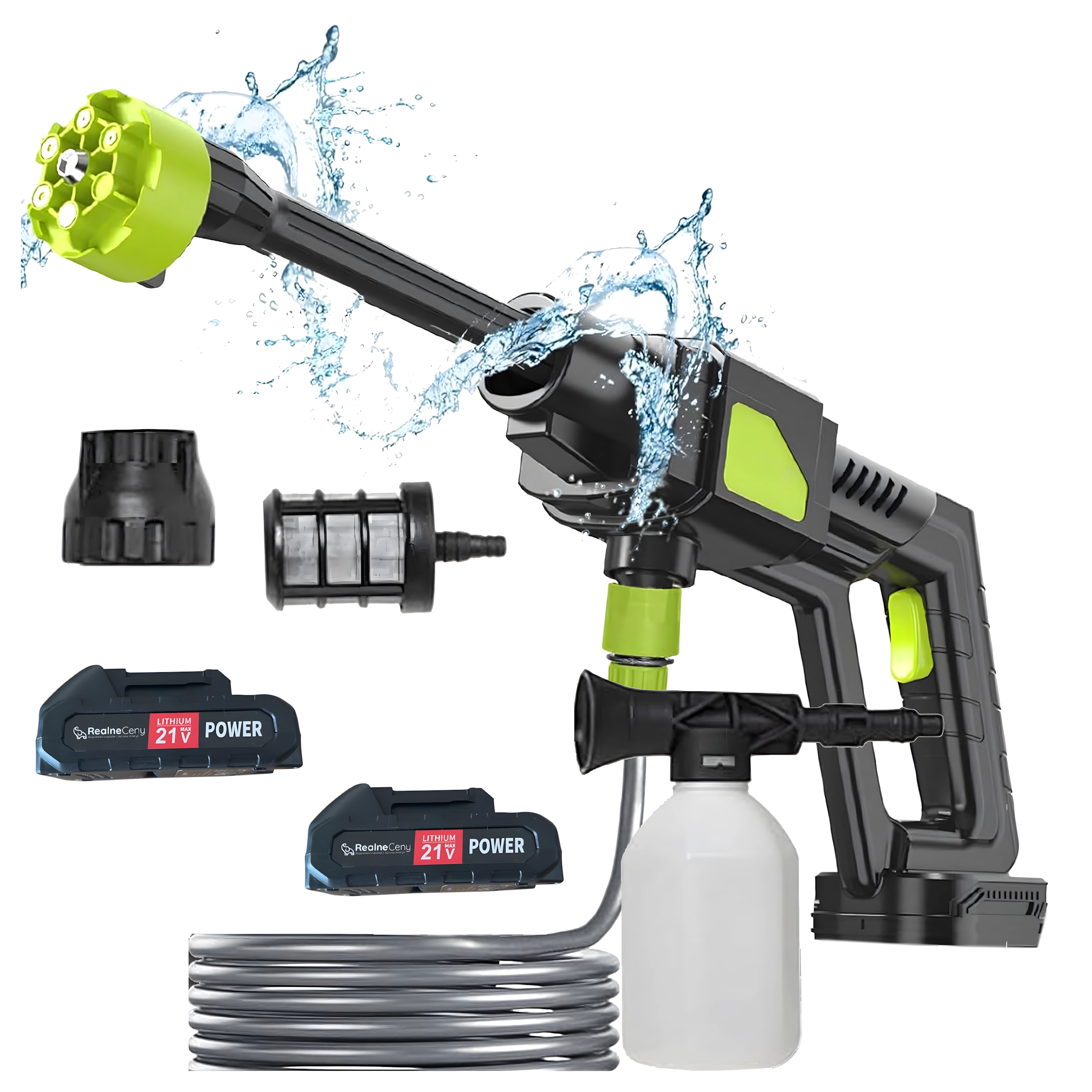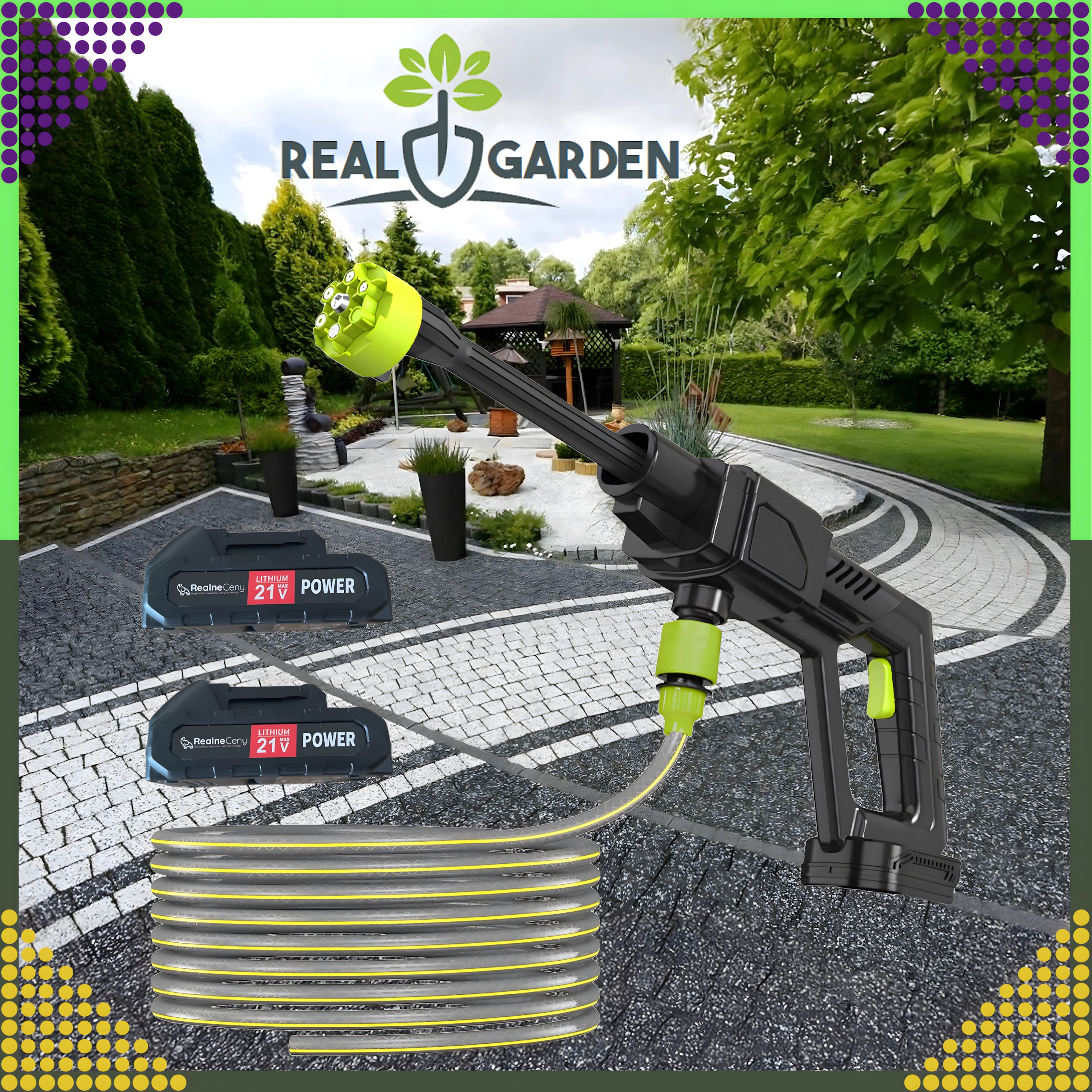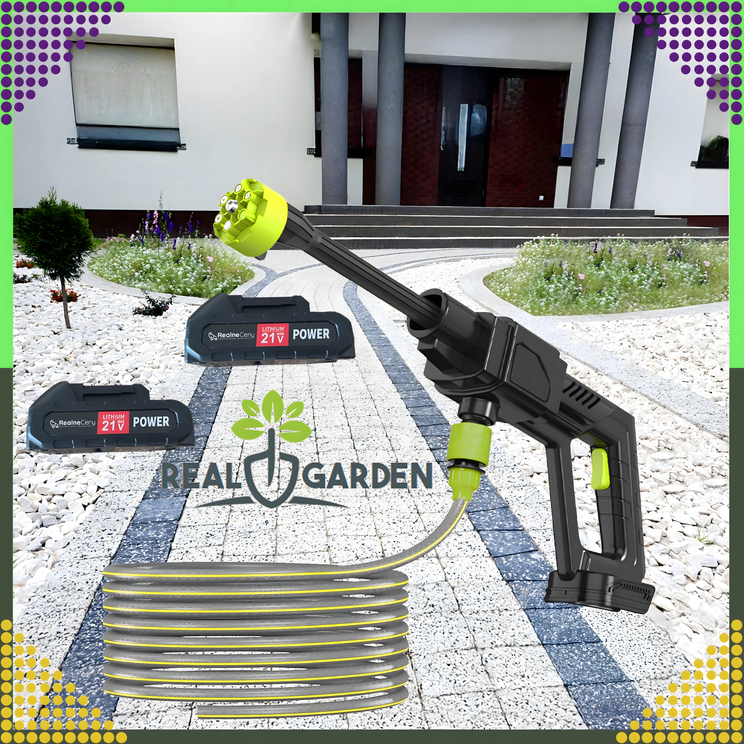 Akku højtryksrenser 21 V, 30 bar, 300 W – trådløs, sæt med slange og 6-i-1 dyse