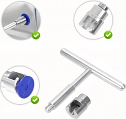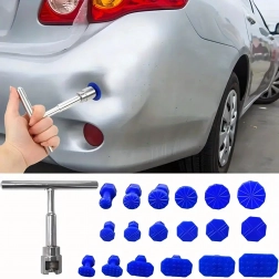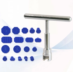 Det praktiske sæt til lakfri udbedring af buler (PDR) gør det muligt hurtigt at rette karrosseriet derhjemme eller på værkstedet. Det metalbaserede trækværktøj med T-håndtag/glidehammer giver præcis og kontrolleret kraft, mens 18 limbare træktapper i forskellige former og størrelser dækker et bredt spektrum af skadetyper.