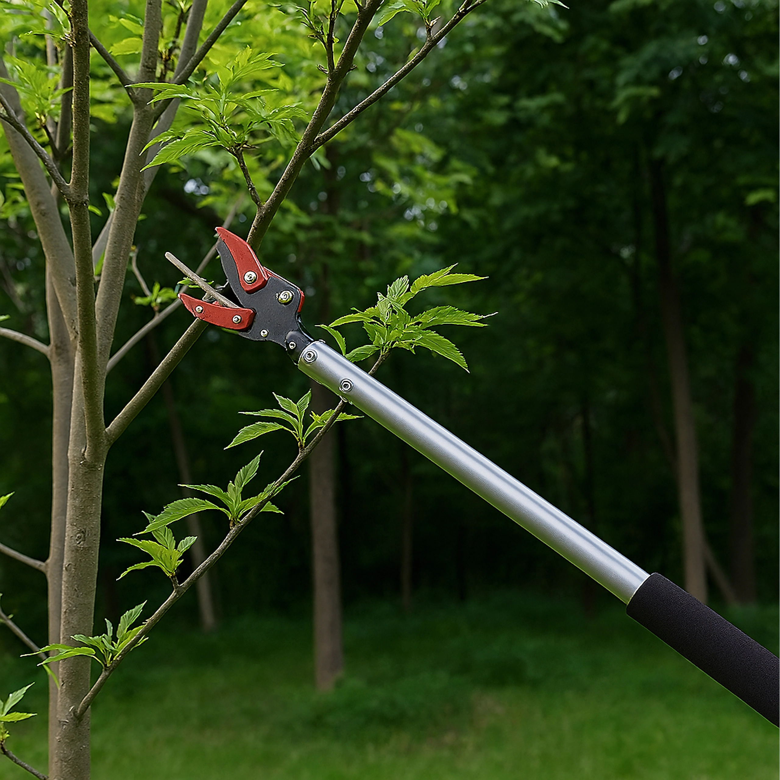 Denne lange grensaks er designet til komfortabel beskæring af grene, formning af buske og sikker frugtplukning fra højere steder. Takket være det lette aluminiumshus er værktøjet let at håndtere, mens det skarpe, holdbare blad sikrer et rent og præcist snit.
