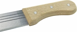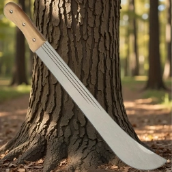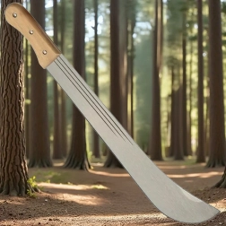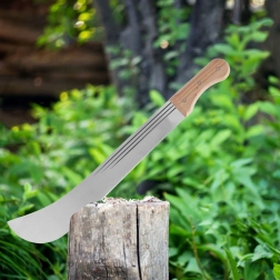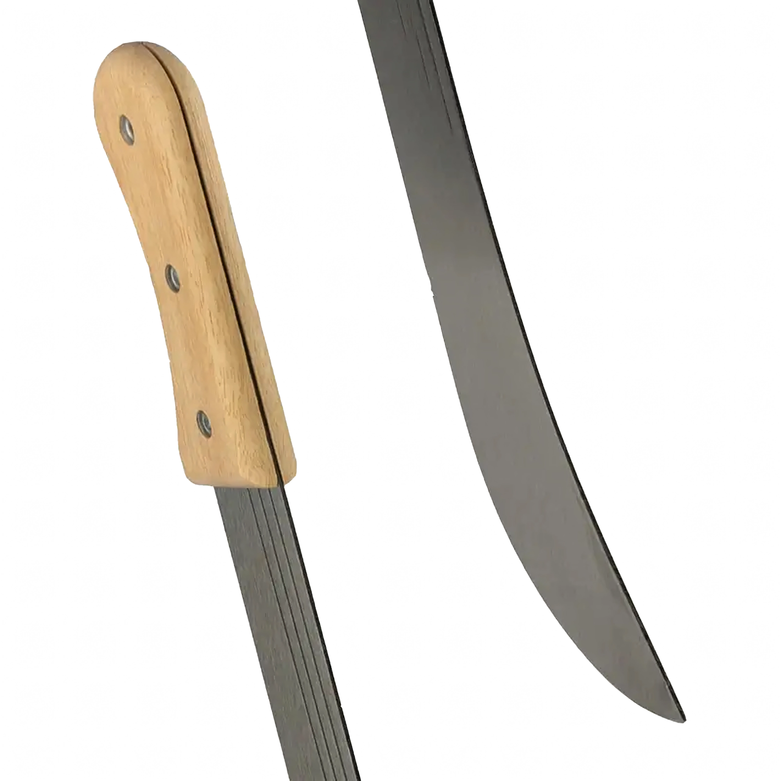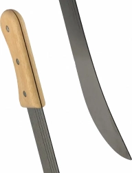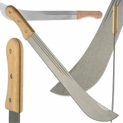 Denne hærdede machete kombinerer et langt, buet skær af kvalitetsstål med et behageligt træhåndtag for et sikkert greb. Den afbalancerede konstruktion giver en glat og effektiv skæring ved rydning af tætte bevoksninger, fjernelse af opvækst eller hurtig formning af bevoksning.