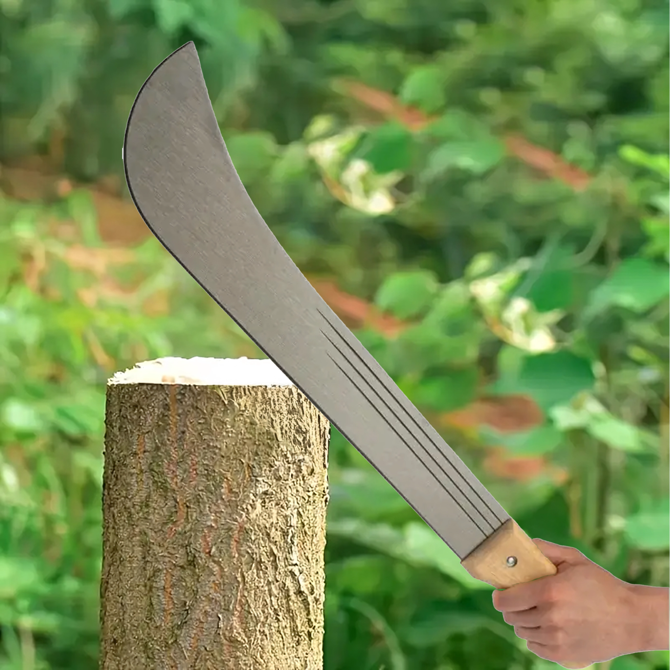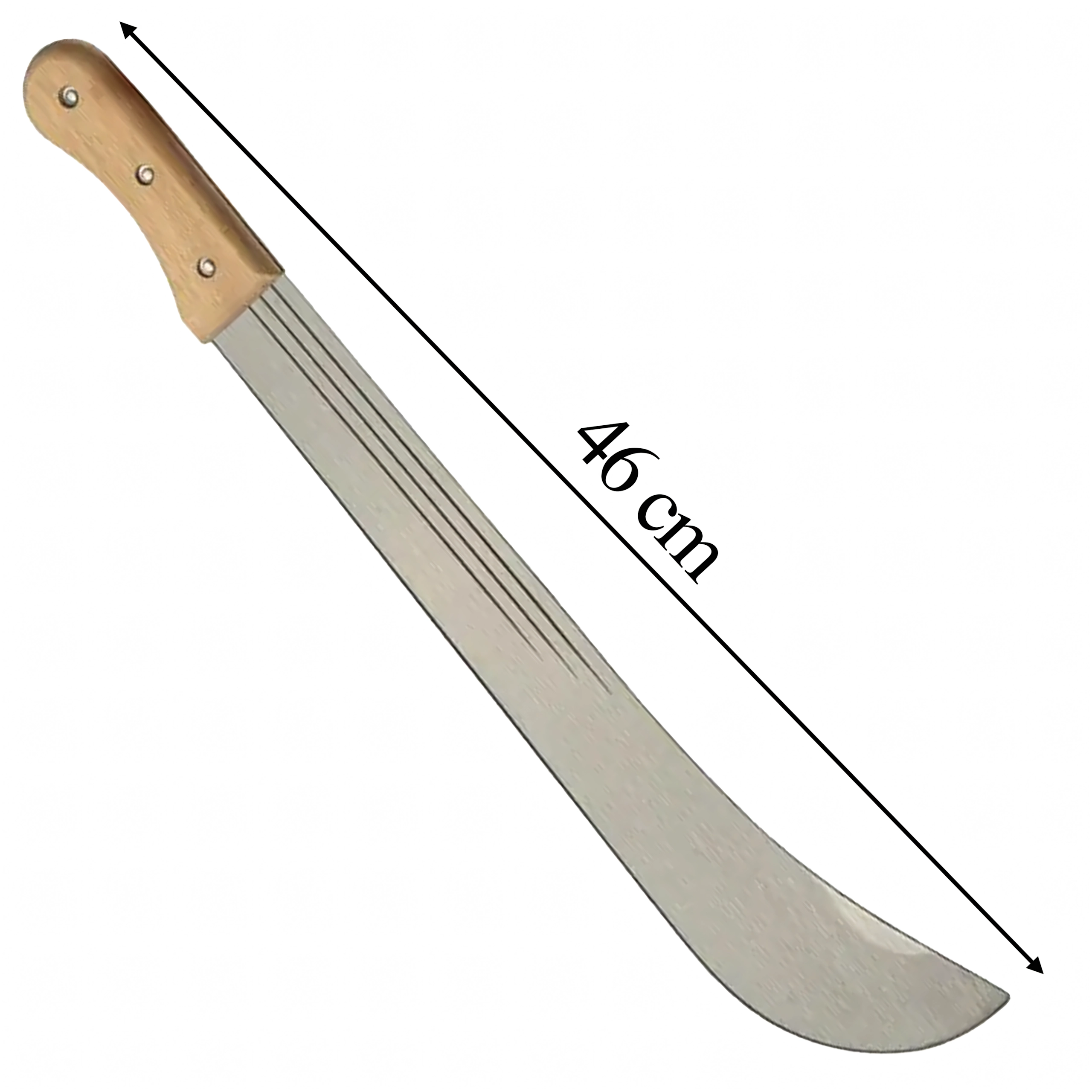 Bladet med længdegående riller reducerer vægten og forbedrer gennemskæringen, mens det solide, nittede håndtag sikrer stabilitet selv ved længerevarende arbejde. Macheten egner sig til havearbejde, skovbrug, camping og survival-aktiviteter.