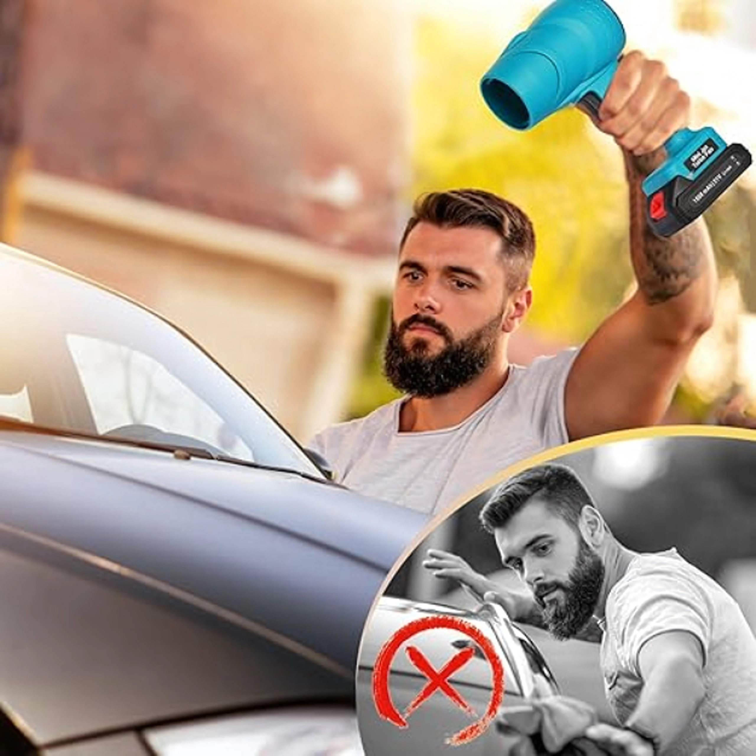 Strøm af varm/koncentreret luft hjælper med at afrime ruder og tørre karrosseri efter vask – ideelt til vinter- og garagebrug.