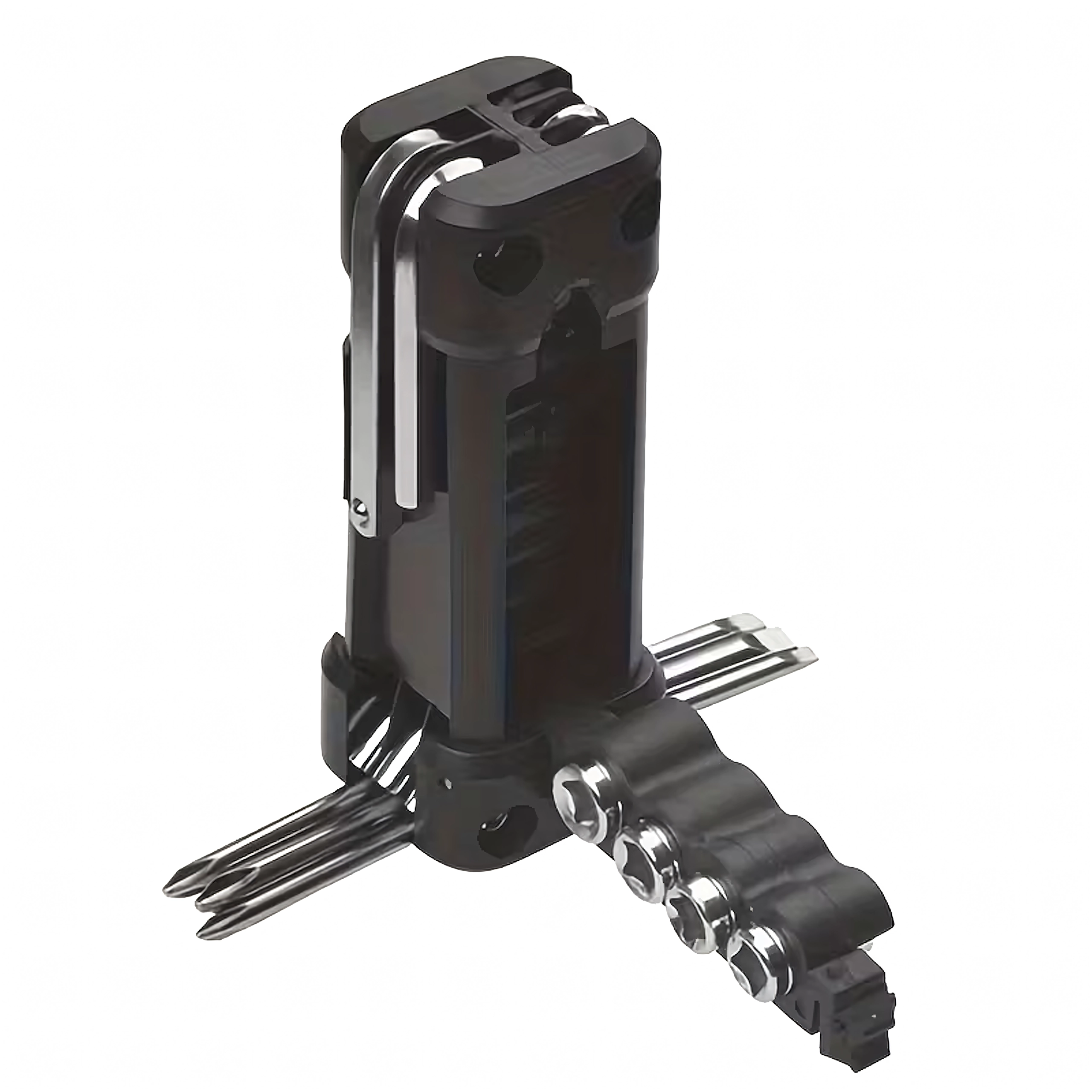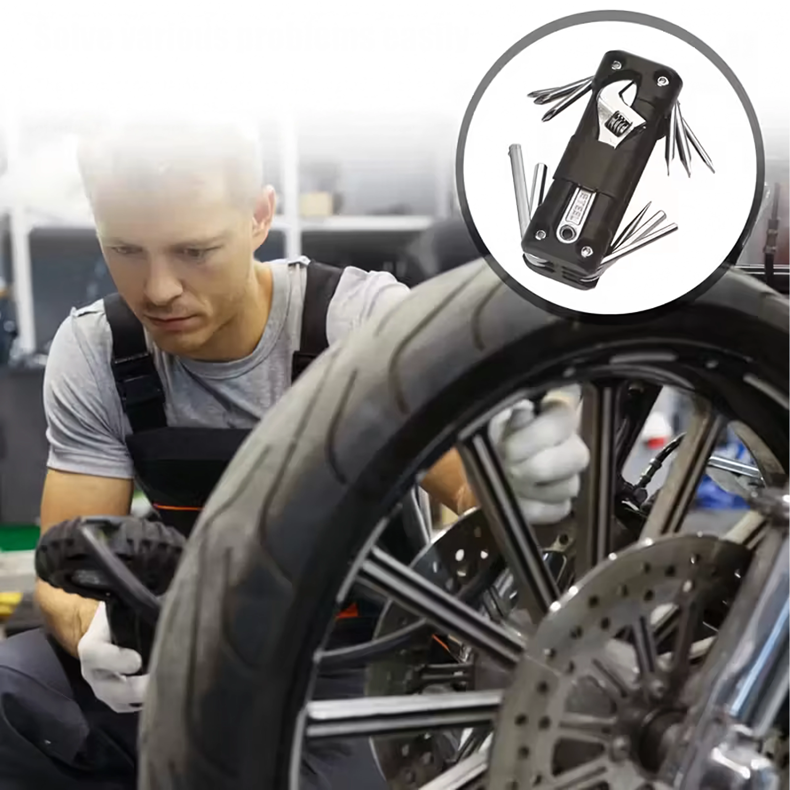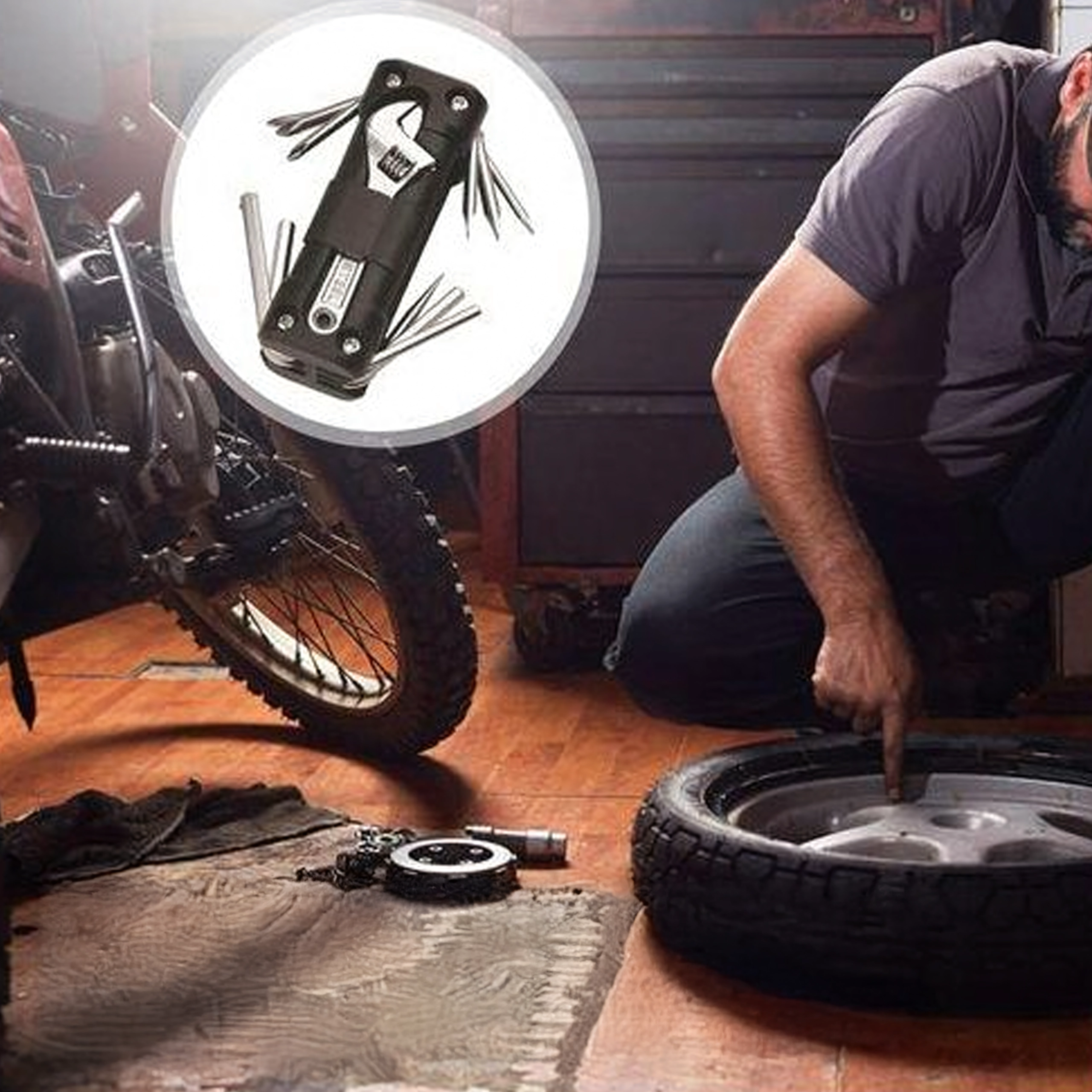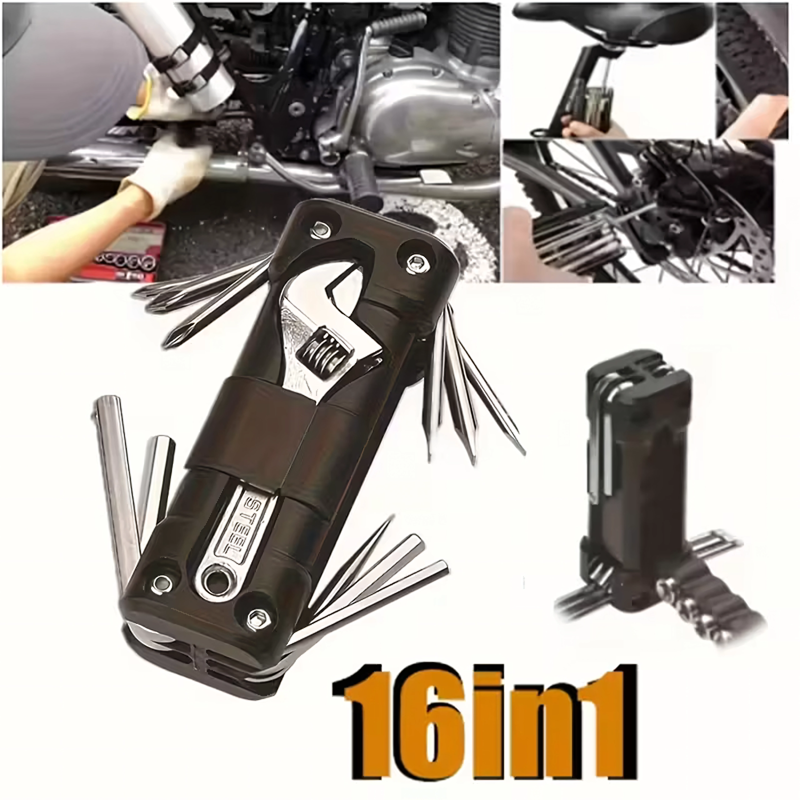 Det universelle 13-i-1 multitool tilbyder alt nødvendigt til tilspænding af skruer og hurtige justeringer på farten og derhjemme. Robuste metalværktøjer og et ergonomisk hus sikrer sikkert greb og lang levetid. Takket være den sammenklappelige konstruktion passer det nemt i lommen, sadeltasken eller handskerummet i bilen.