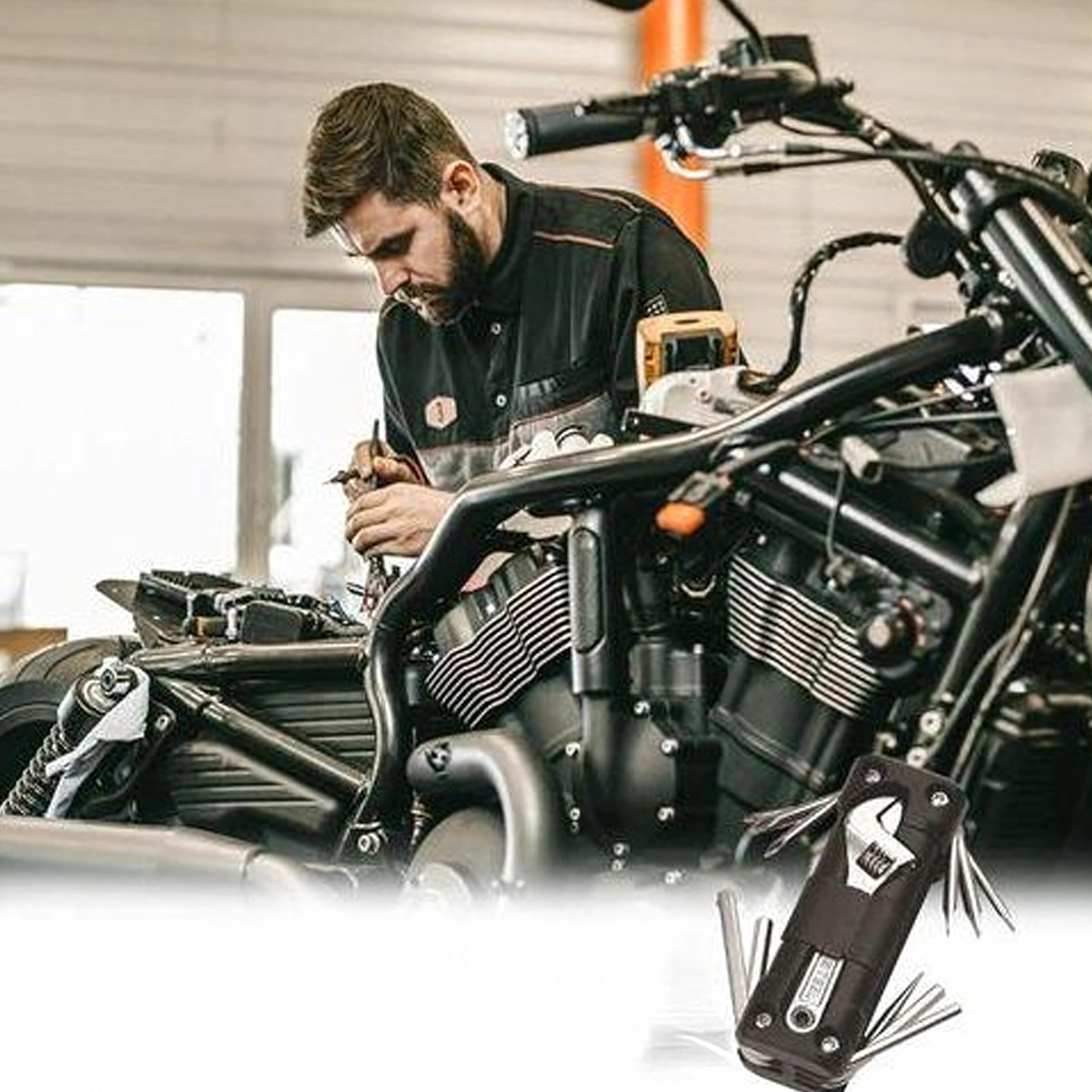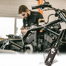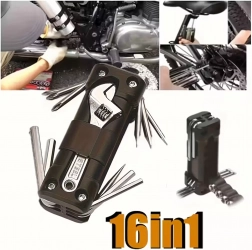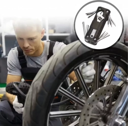 Indeholder et udvalg af de mest anvendte unbrakonøgler, skruetrækkere og nøgler, inklusive en justerbar nøgle og tilbehør til hurtige indgreb på cykel, motorcykel eller i værkstedet. En pålidelig hjælper til daglig vedligeholdelse og uforudsete situationer.