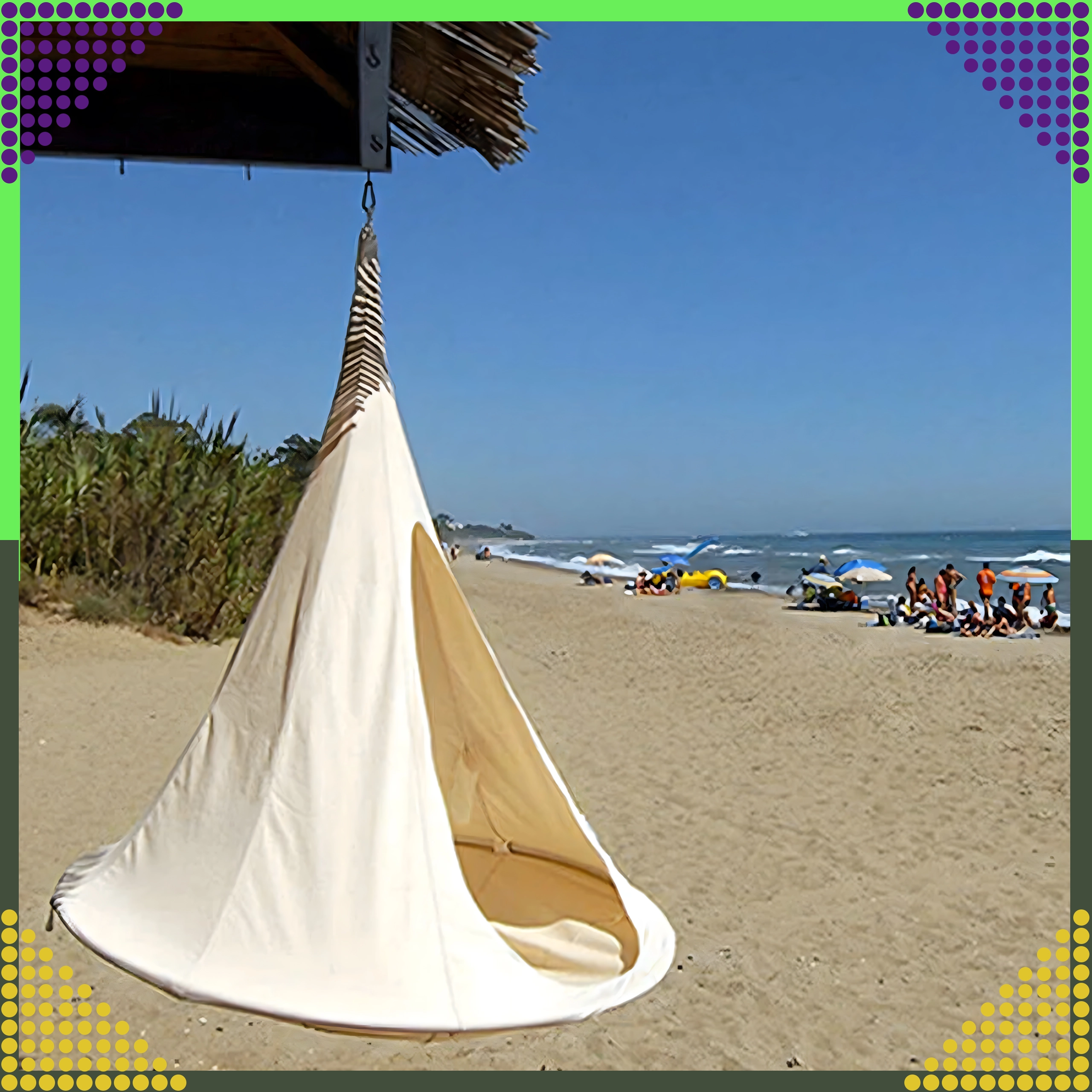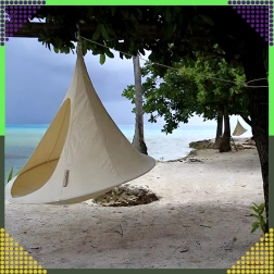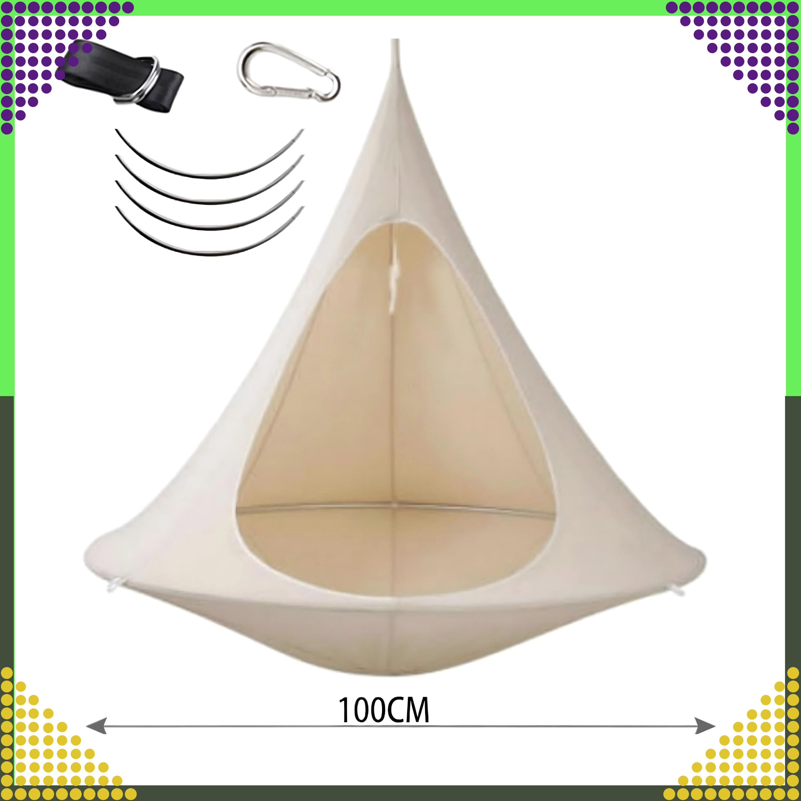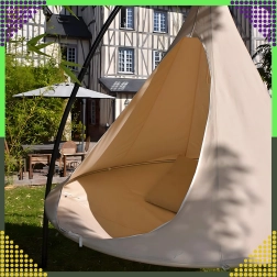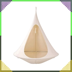 Den hængende kokon-hængekøje skaber et behageligt, sikkert og fredeligt fristed til læsning, afslapning eller en middagslur. Takket være det åndbare materiale og den robuste ophængning i ét punkt passer den i børneværelset, stuen eller i haven under et træ. Den beige farve er let at kombinere med enhver stil.