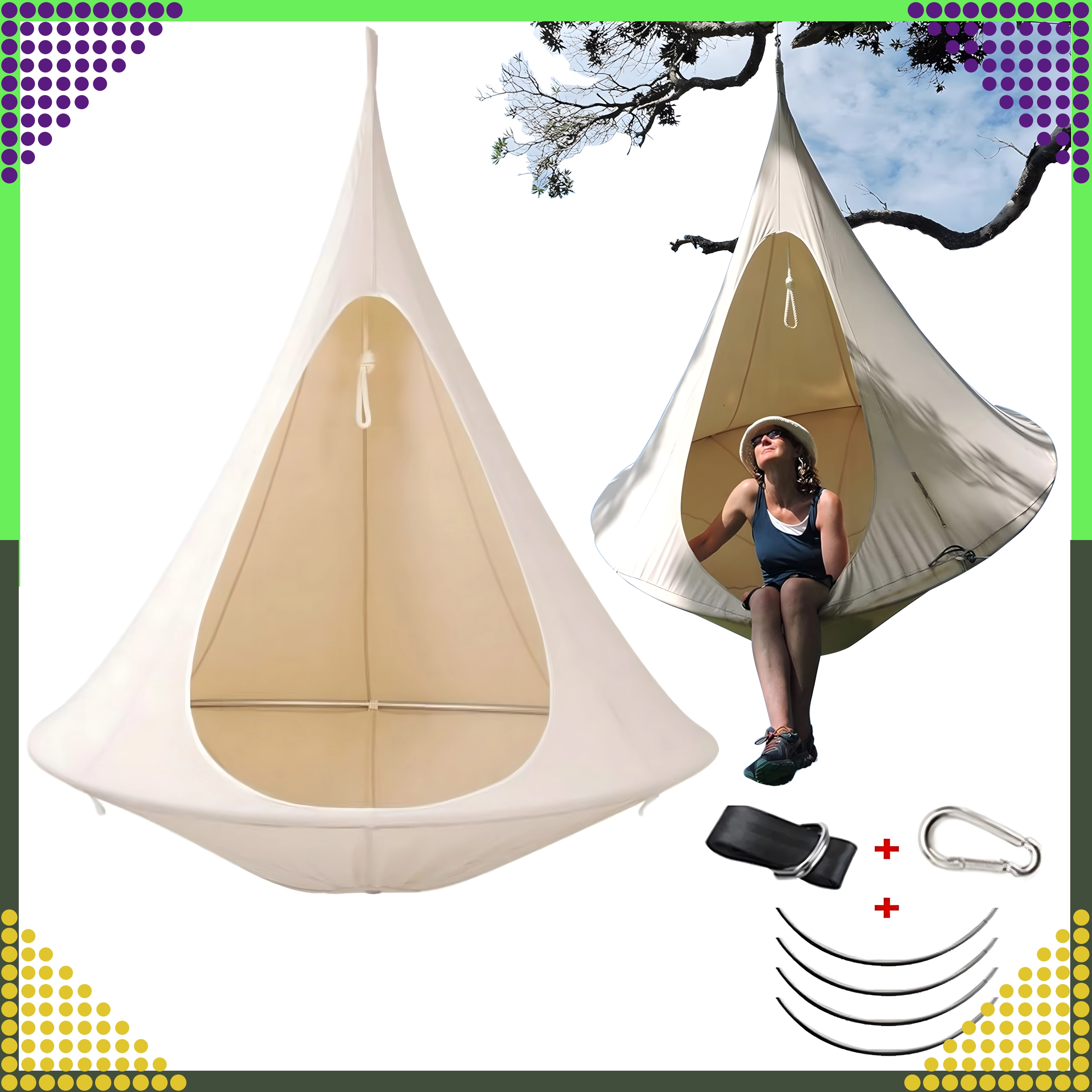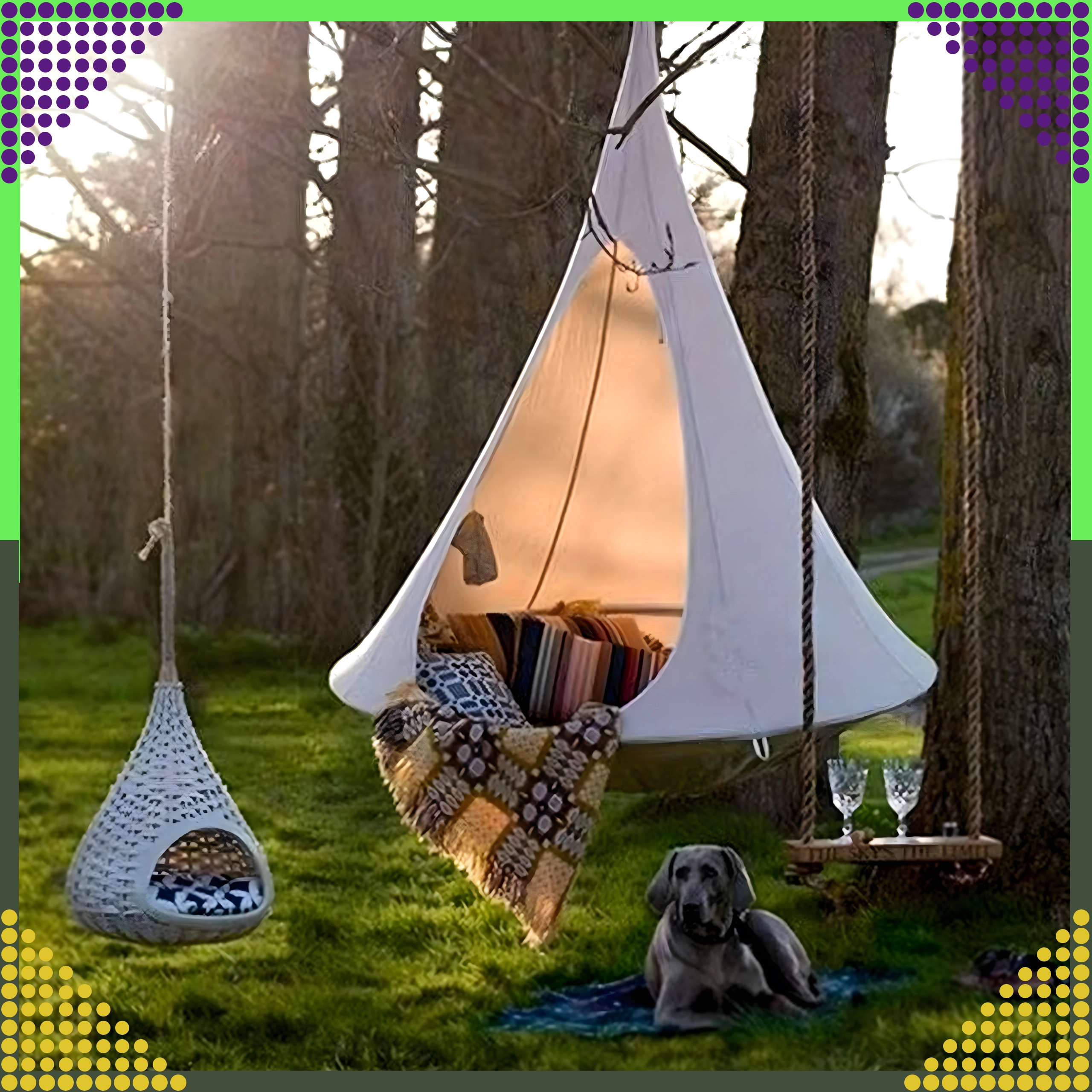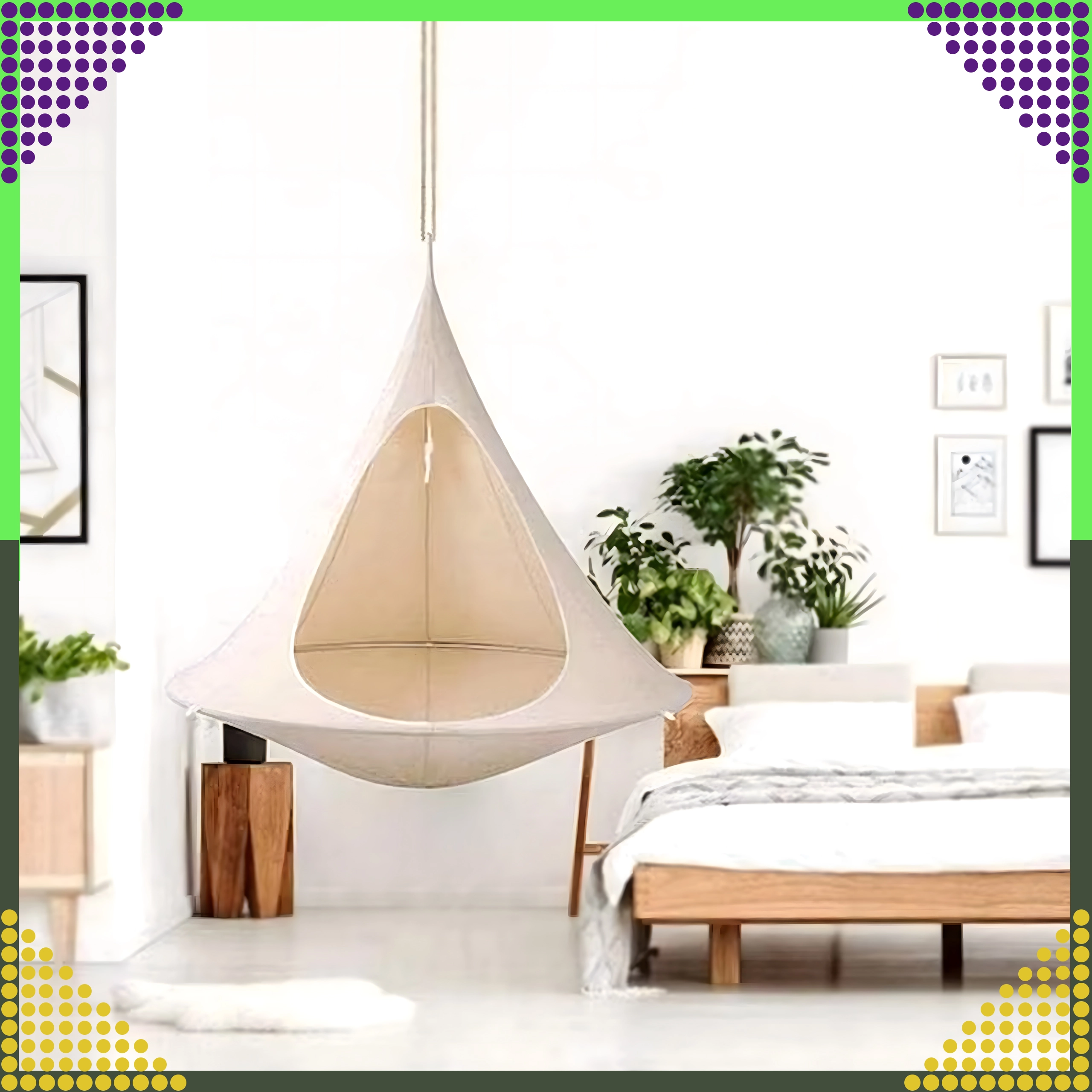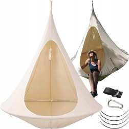Nyd den perfekte afslapning i en hængende kokon-hængekøje, der kombinerer stilfuldt design, solid konstruktion og maksimal komfort. Denne hyggelige “kokon” er ideel til have, terrasse, altan og indendørs, og takket være bæreevnen på 150 kg glæder den både børn og voksne. Åndbart materiale og nem vedligeholdelse gør den til et fantastisk sted at slappe af året rundt.