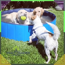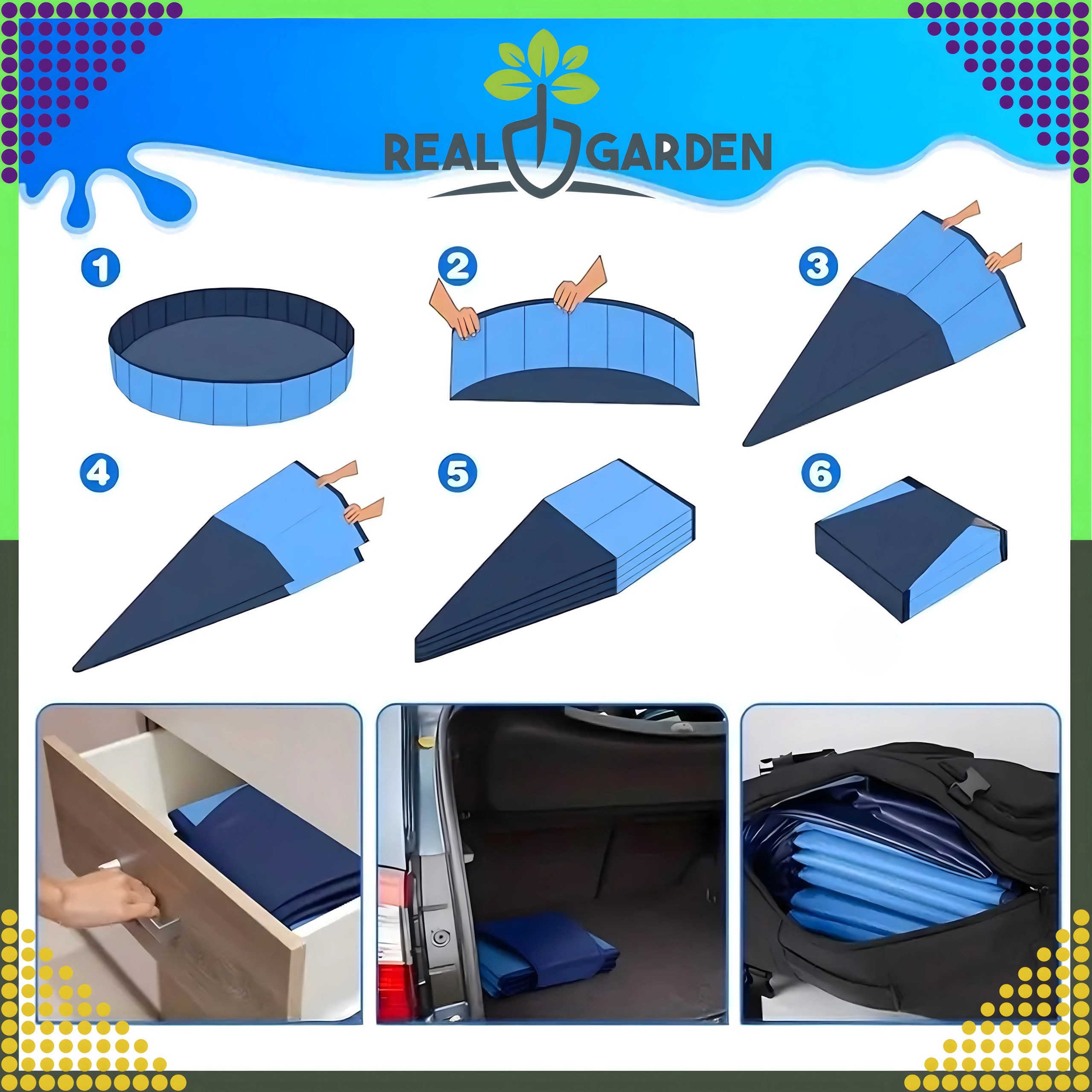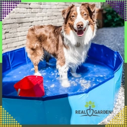 Det sammenklappelige hundebassin er perfekt til sommerafkøling, hurtig afskylning af poter og sjove vandlege. Takket være det robuste PVC-materiale holder det formen uden behov for pumpning og tåler normal brug af kæledyr.