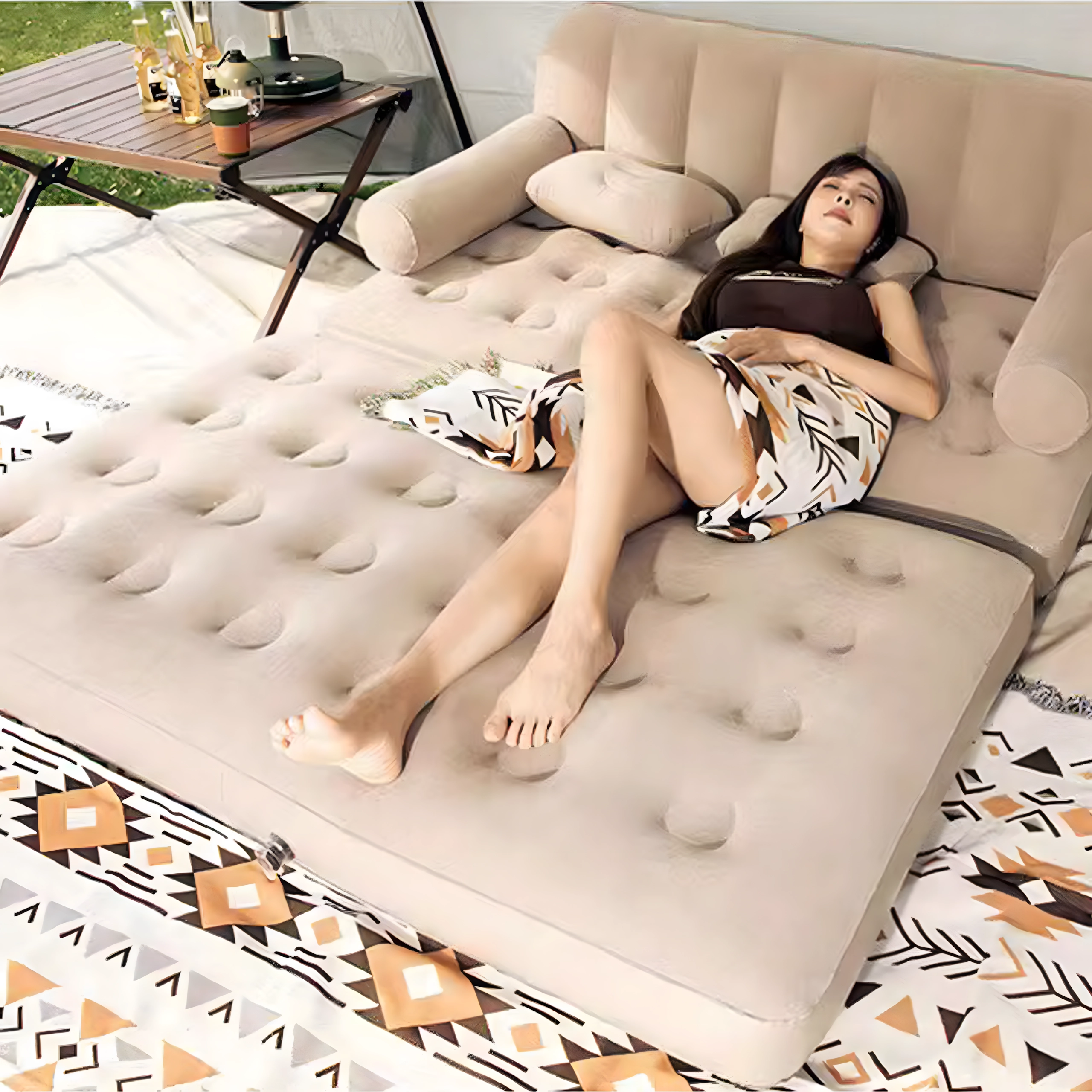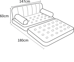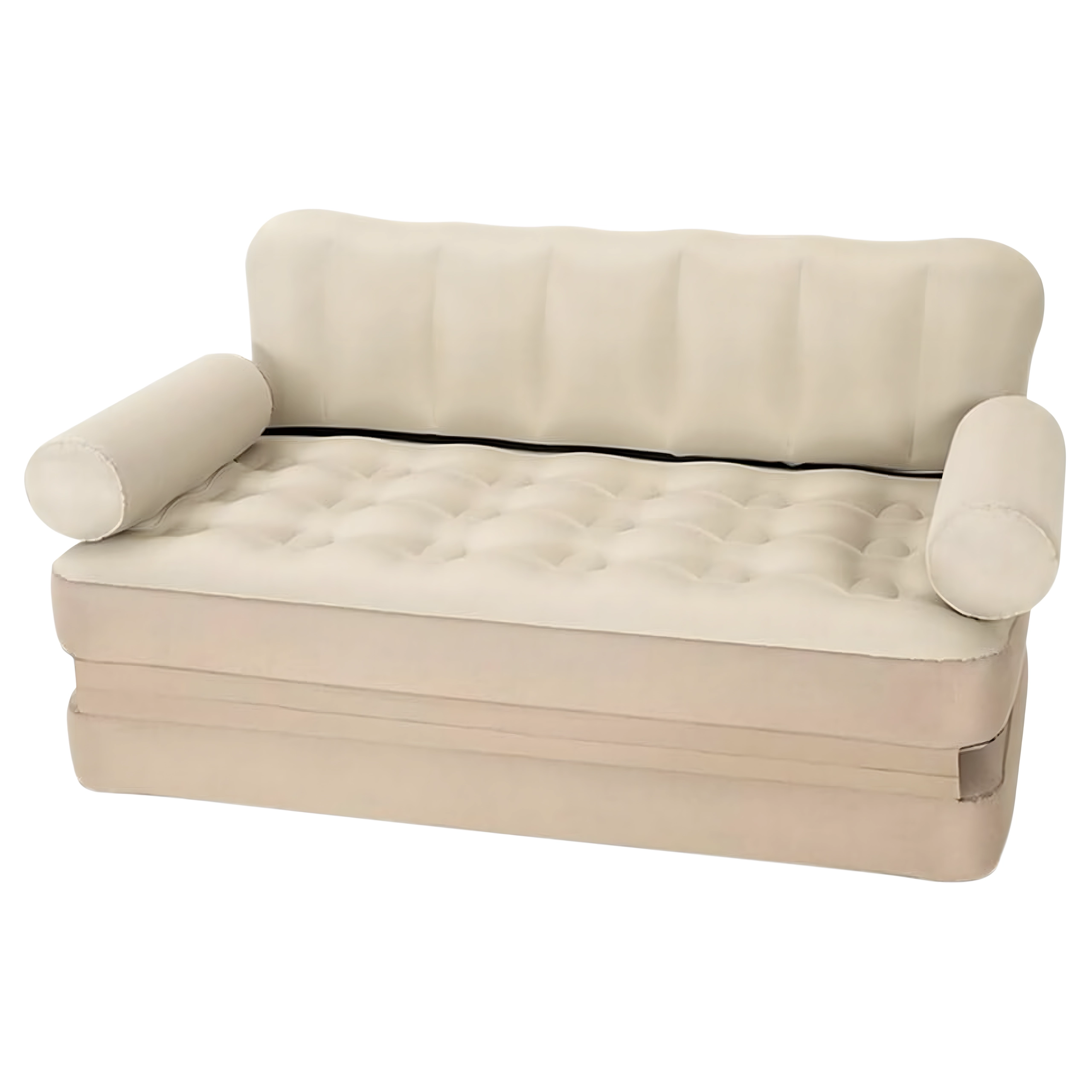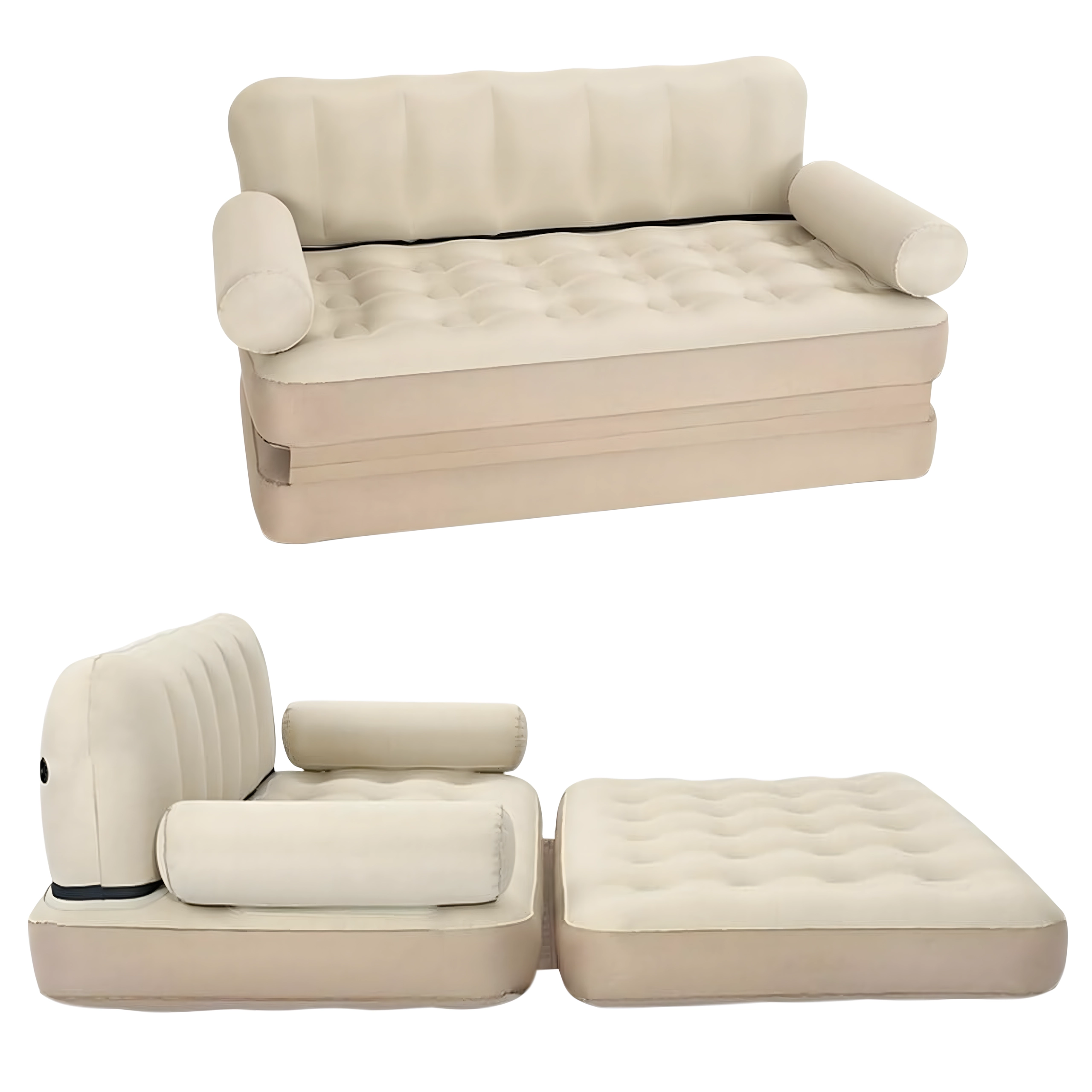 Oplev en fleksibel løsning til både siddende og sovende i ét. Denne oppustelige 5-i-1-sovesofa forvandles på få øjeblikke fra en komfortabel sofa til en rummelig seng til to personer. Den bløde, kammeropdelte overflade reducerer trykpunkter og giver støtte både ved siddende og sovende.
