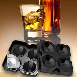 Lav effektfulde isdiamanter med denne praktiske XL-silikoneform til 4 stk. Den er holdbar, fleksibel og nem at få ud, så isen hverken knækker eller brækker. Perfekt til whisky, cocktails og alkoholfrie drinks, men også til chokolade og gelé. Materialet er fødevaregodkendt, og formen er egnet til fryser, ovn og opvaskemaskine.