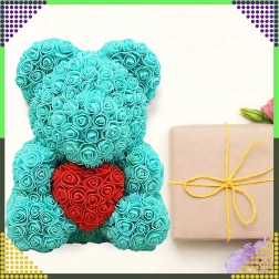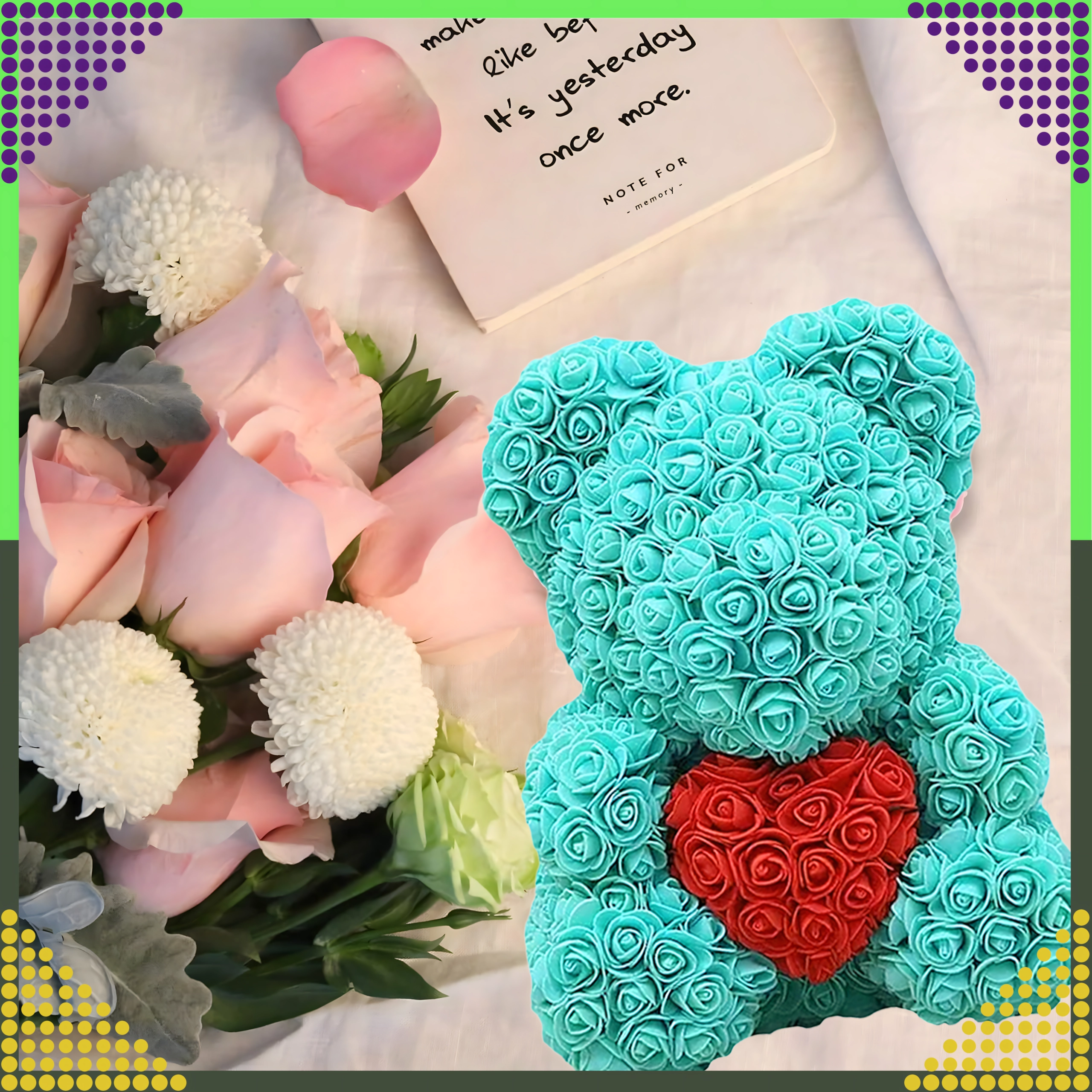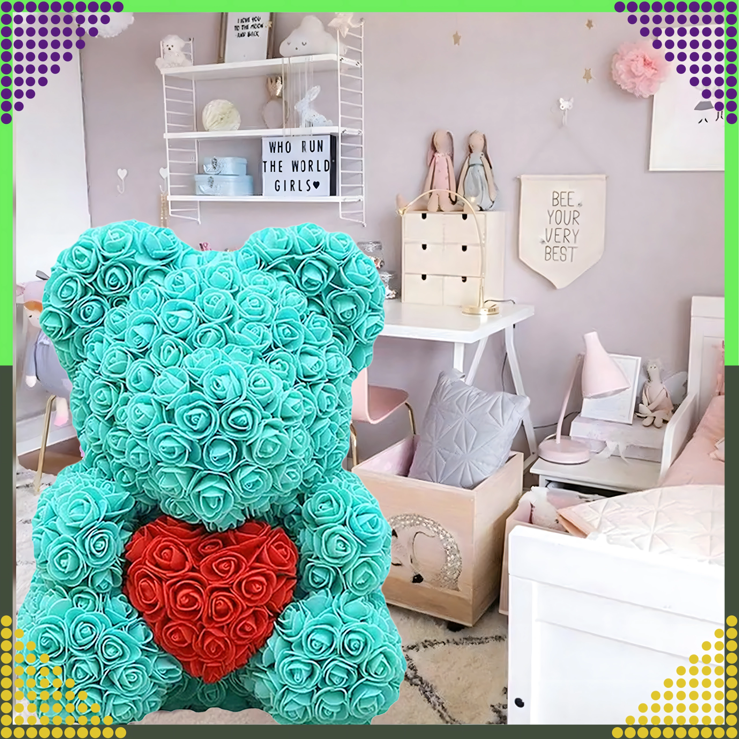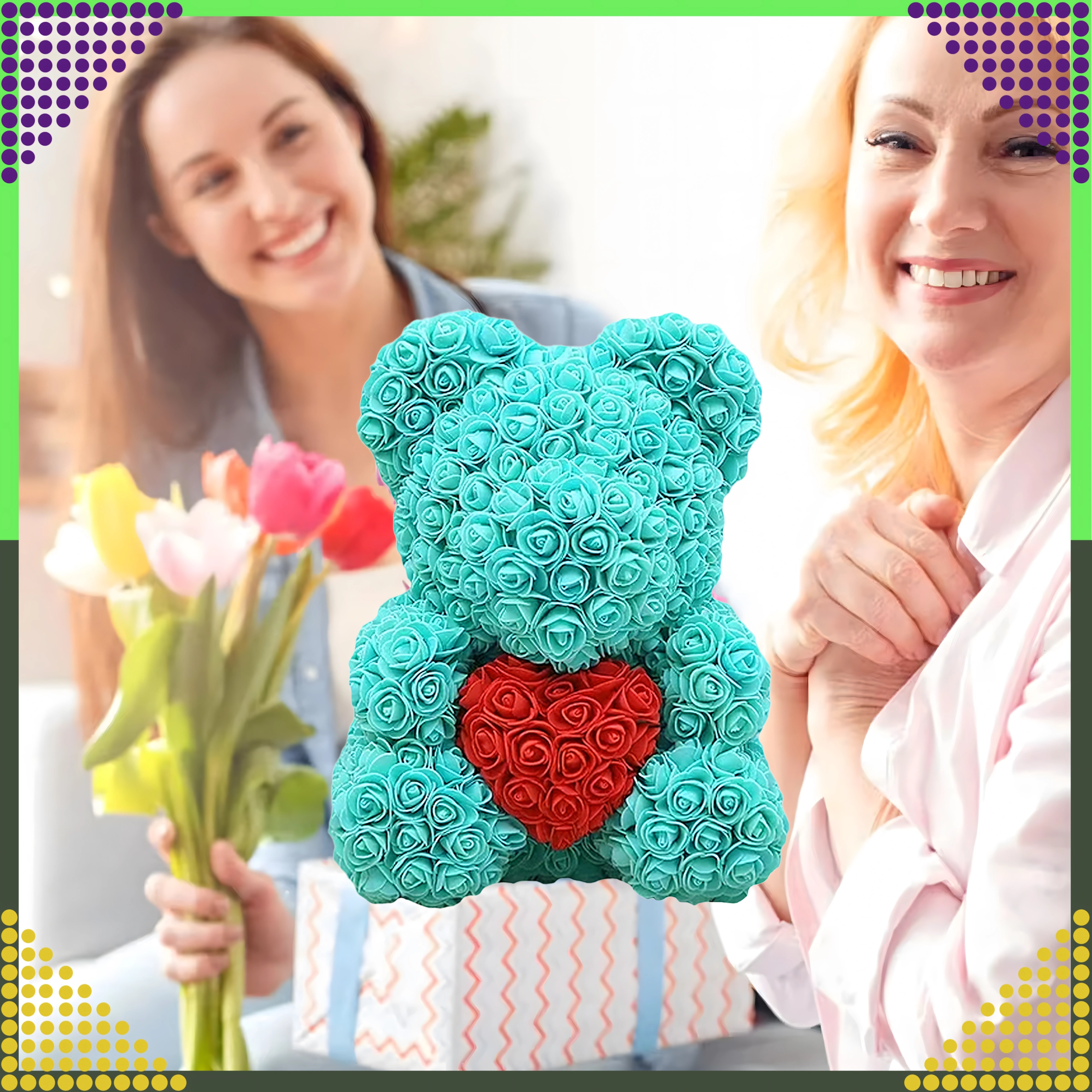 Giv følelser i smuk indpakning. Rosenbamsen er håndsamlet af mange skumblomster, som bevarer deres form og farve. Derfor er den en stilfuld og holdbar dekoration til soveværelse, stue eller det festlige bord.