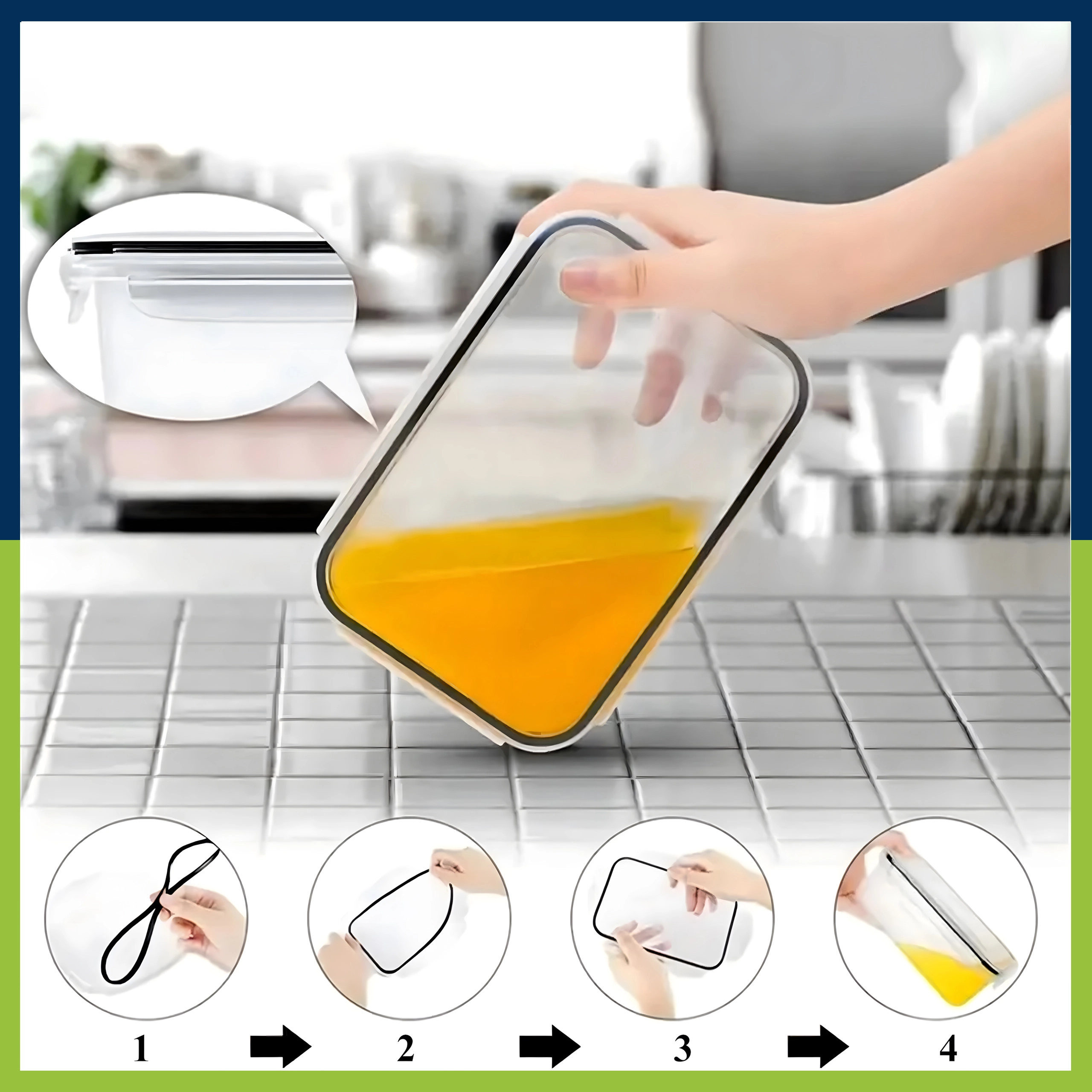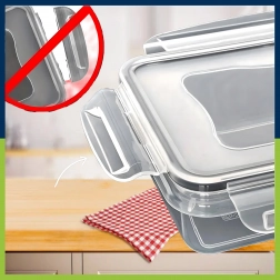 Kliklåg med silikonepakning beskytter maden mod udtørring og forhindrer lækager under transport.