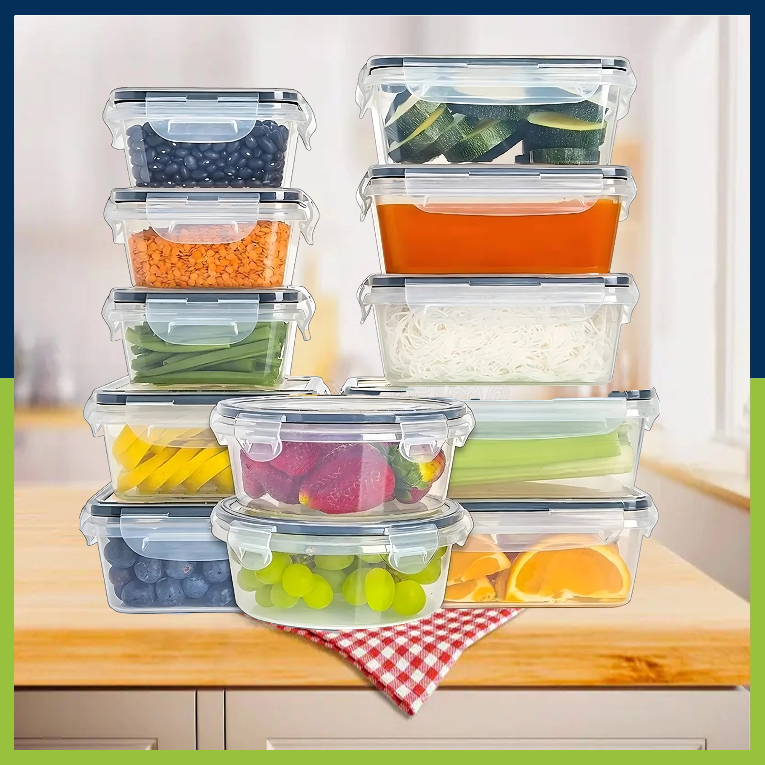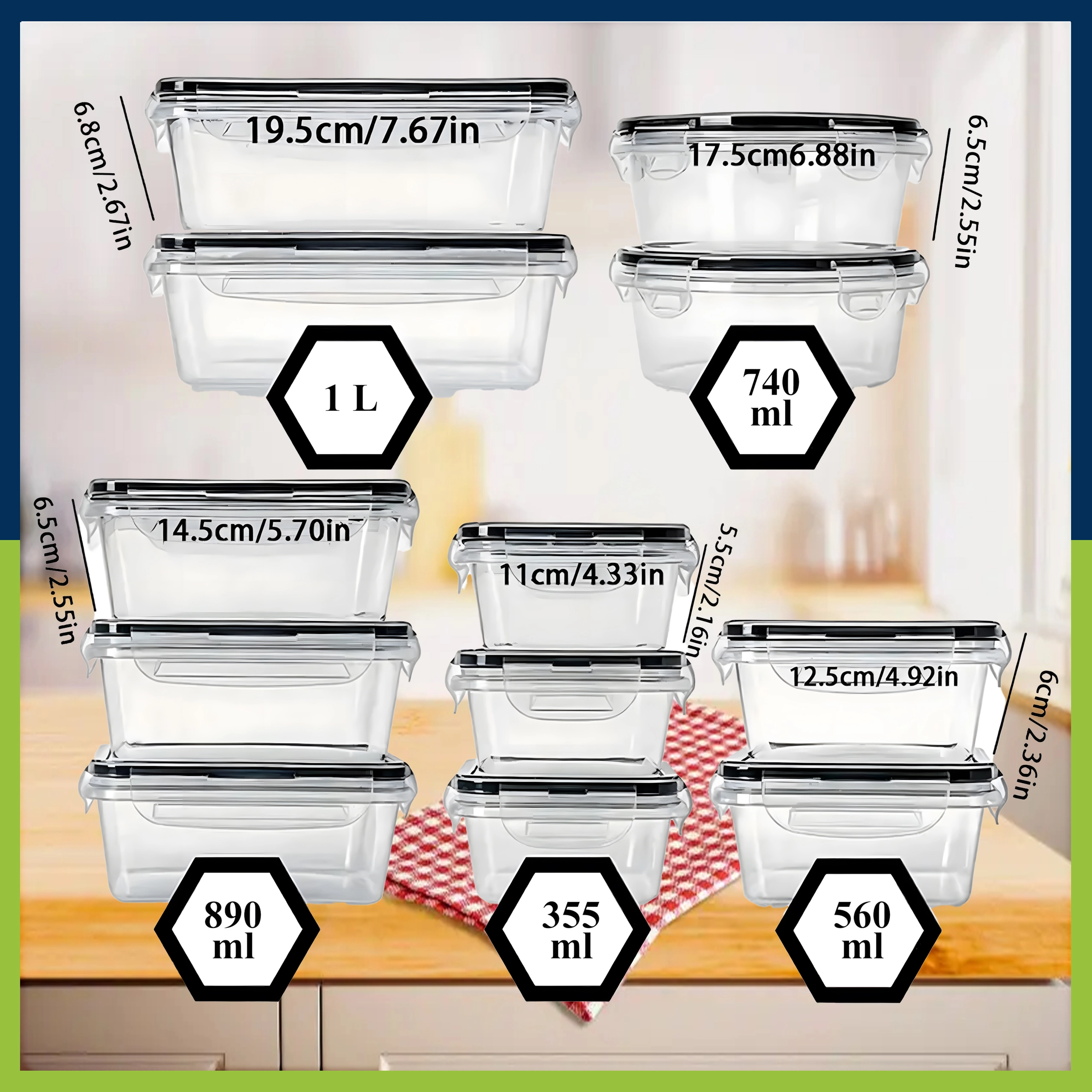 Dette alsidige sæt indeholder både små og større beholdere til snacks, frugt, grønt, madrester og meal prep. De gennemsigtige sider gør det nemt hurtigt at identificere indholdet, og de robuste låg med låseklapper sikrer pålidelig tæthed mod lækager og lugte.