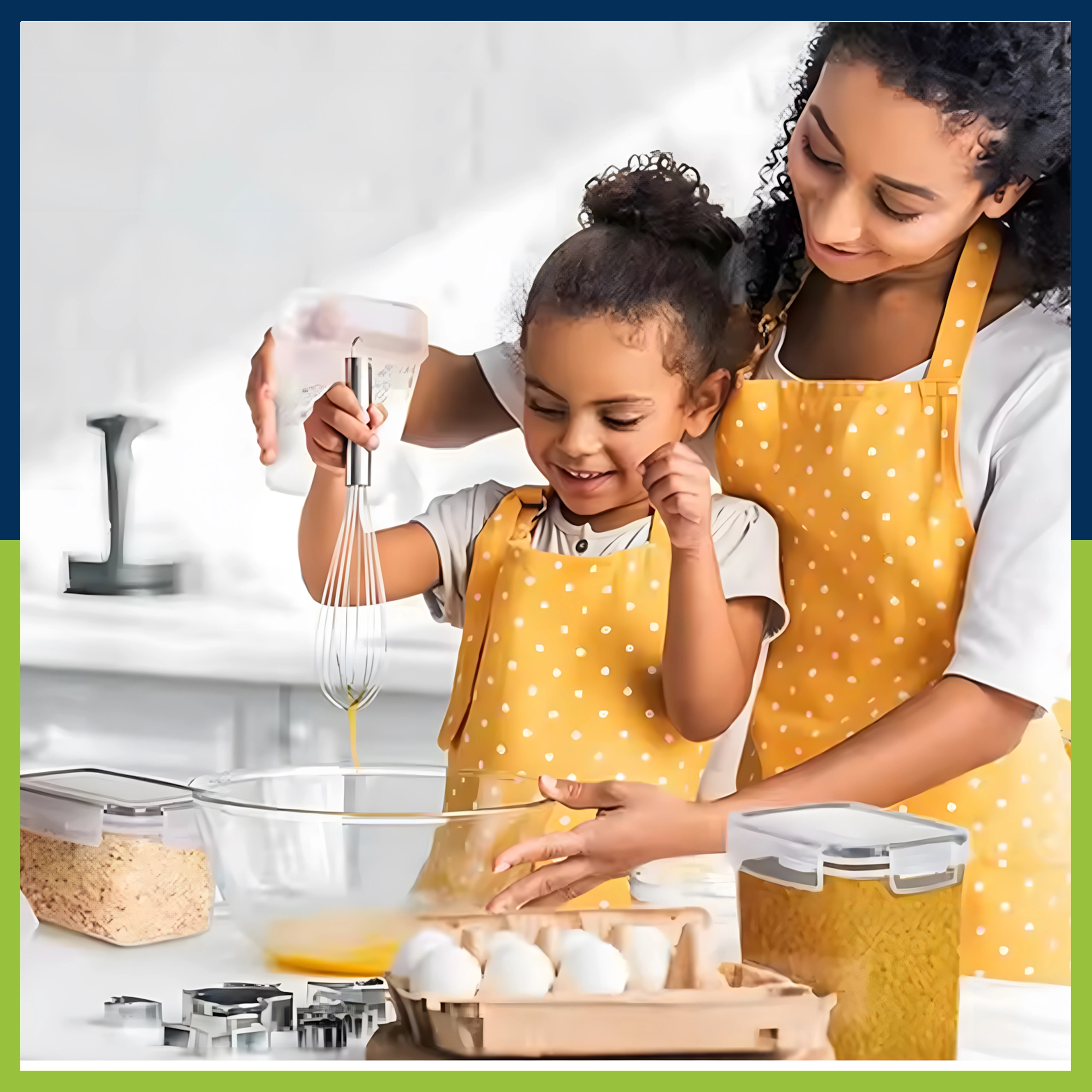 Beholderne er lavet af kvalitetsplast uden BPA, egnet til kontakt med fødevarer. Takket være den stabelbare og indskydelige løsning sparer de plads i køkkenet, køleskabet og tasken på farten. Ideelle til hjemmet, arbejde, skole og picnic.