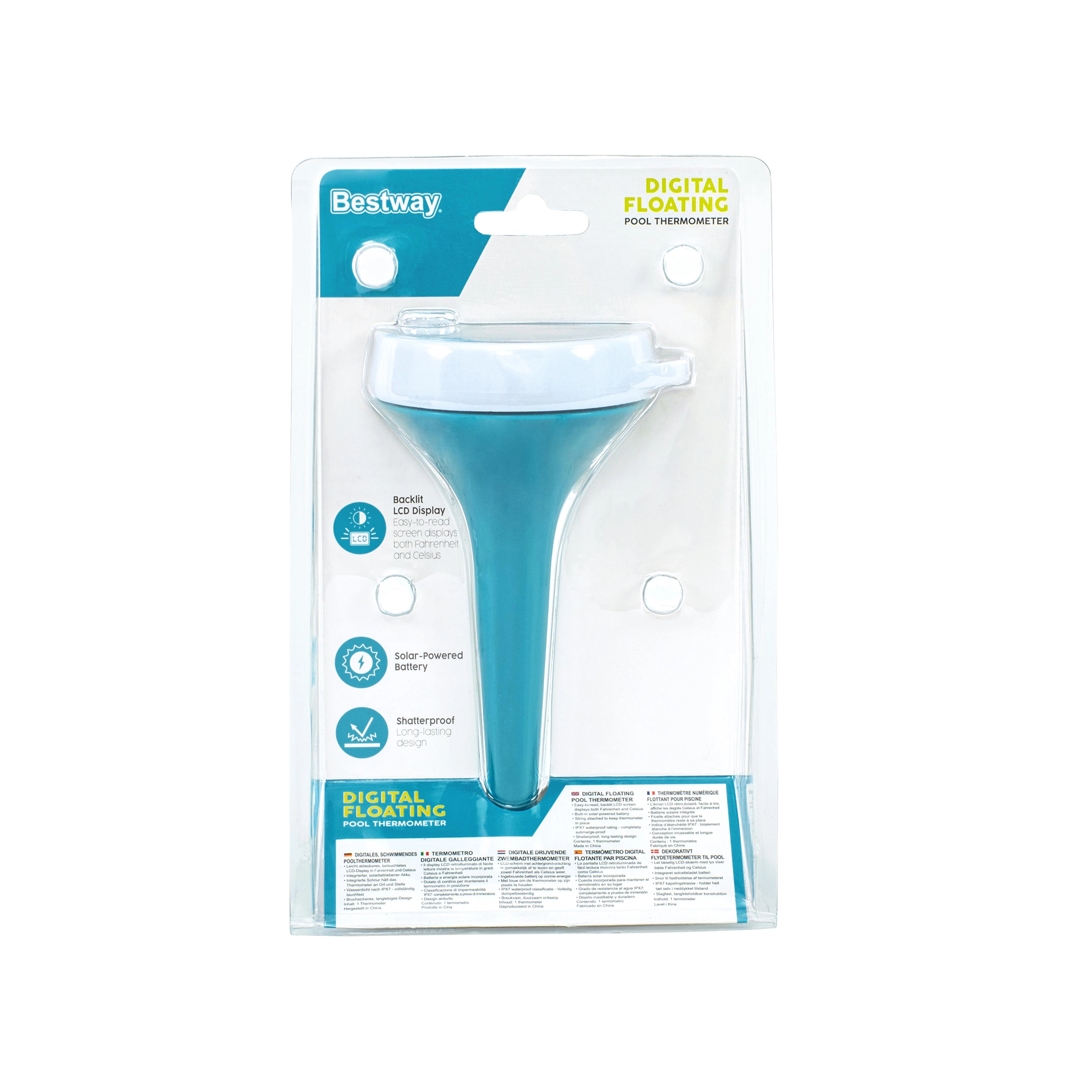 Det digitale solcelledrevne termometer fra BESTWAY er en praktisk løsning til pools, spabade og havedamme. Det flydende design med et overskueligt display viser straks den aktuelle vandtemperatur, og solpanelet sikrer miljøvenlig, vedligeholdelsesfri drift uden behov for at skifte batterier.
