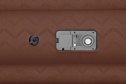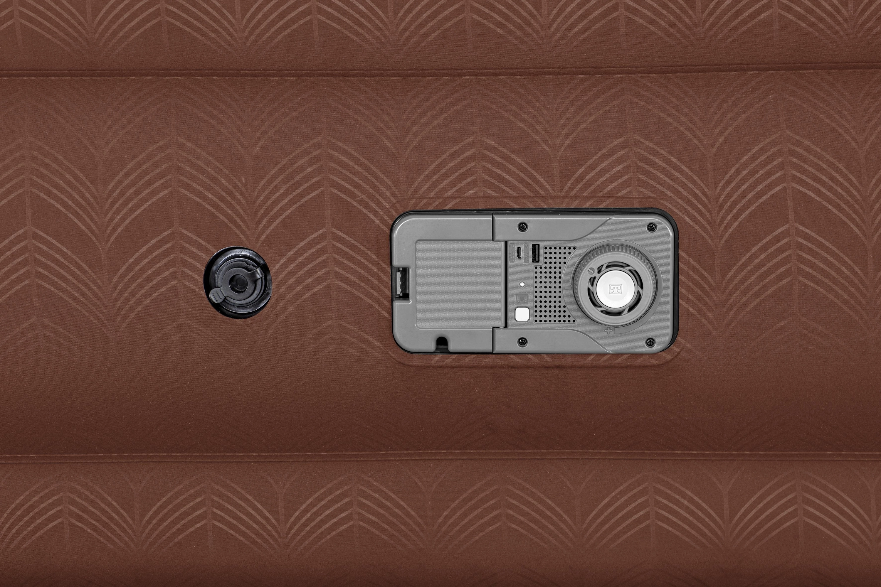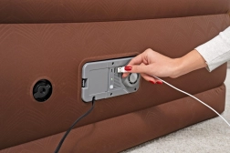 Den indbyggede elektriske pumpe (220–240 V) puster sengen op og tømmer den på ca. 3 minutter. Betjeningspanelet er overskueligt og let at nå.