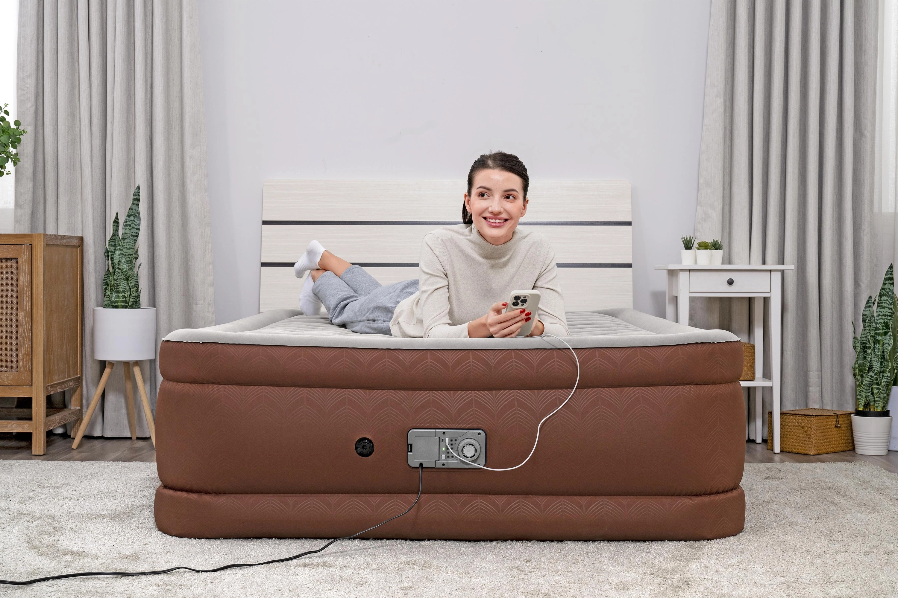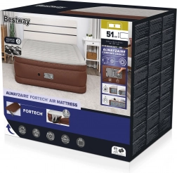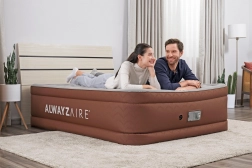 Nyd en god nats søvn med den dobbelte oppustelige seng BESTWAY ALWAYZAIRE. Den smarte AlwayzAire-teknologi overvåger og justerer løbende trykket, så madrassen forbliver stabil og behageligt fast uden forstyrrende efterpumpning i løbet af natten. Den integrerede elektriske pumpe (220–240 V) sørger for hurtig oppustning på omkring 3 minutter og lige så nem tømning efter brug.
