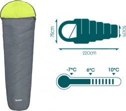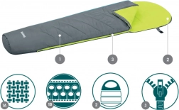 Hule fibre Hollow Fiber 170 g/m² holder effektivt på varmen og giver komforttemperatur i intervallet +6 til +10 °C med en ekstrem grænse ned til -7 °C. Takket være en vægt på kun 0,8 kg og kompakte mål efter pakning er den ideel til trekking, teltture og festivaler. En praktisk transportpose medfølger.