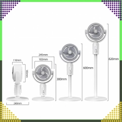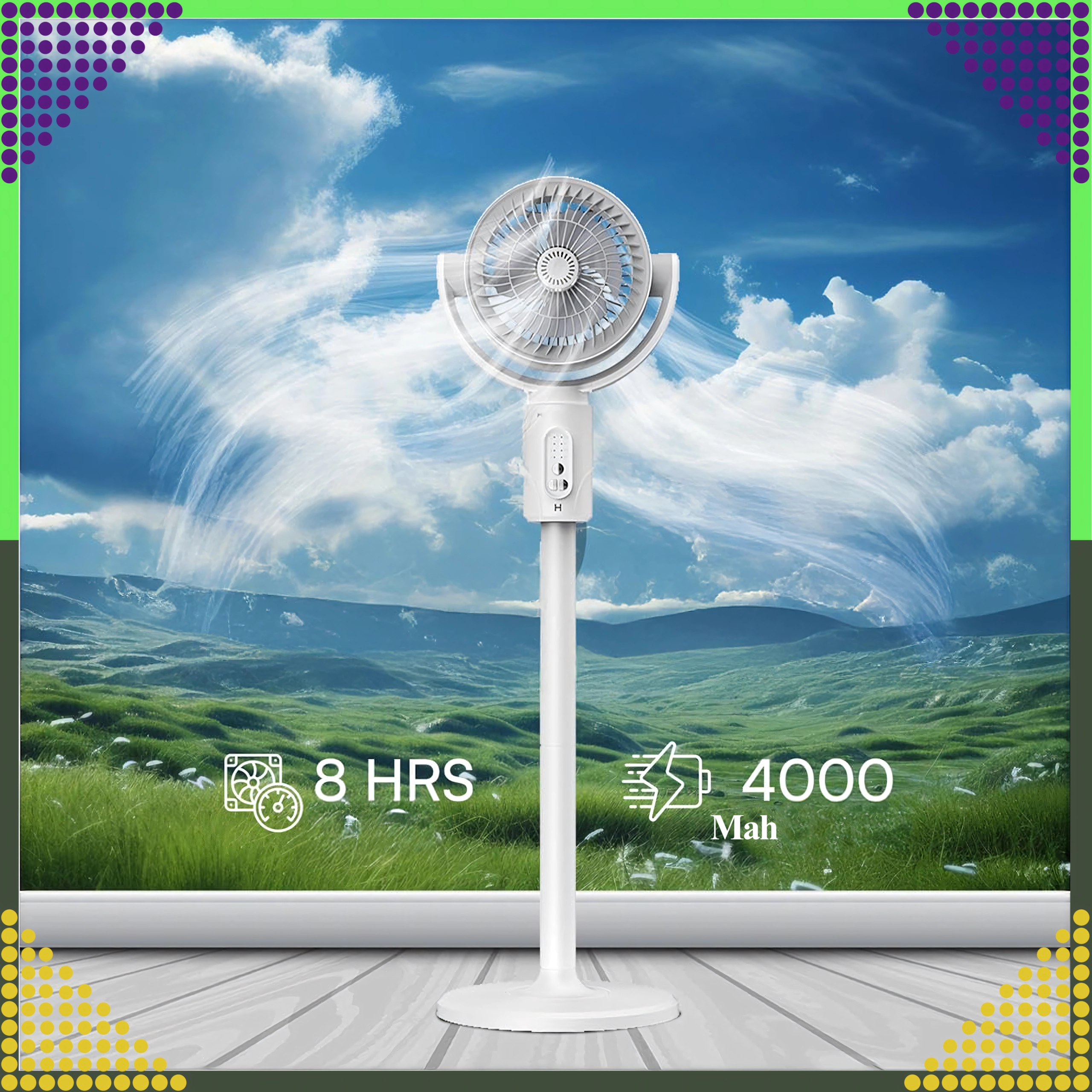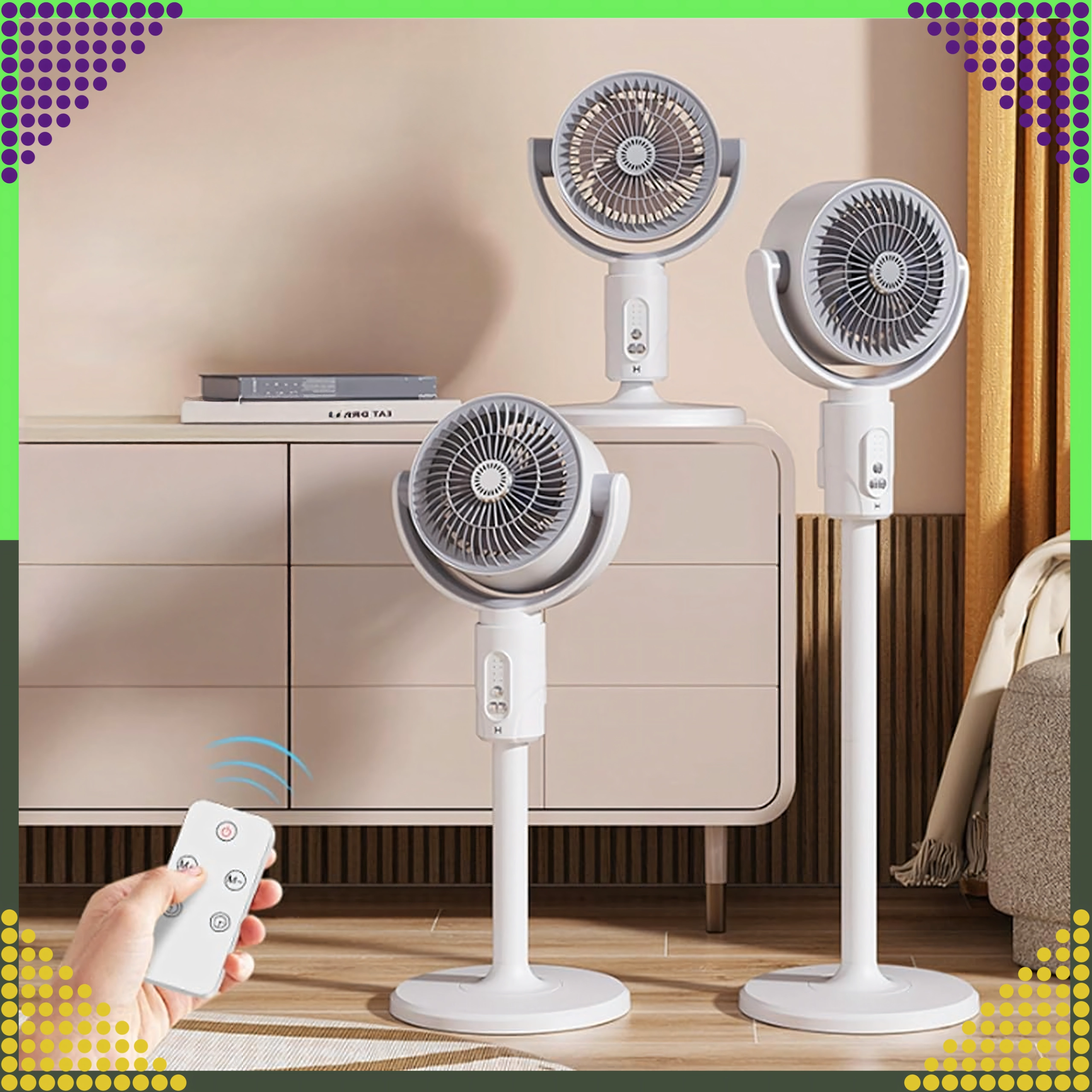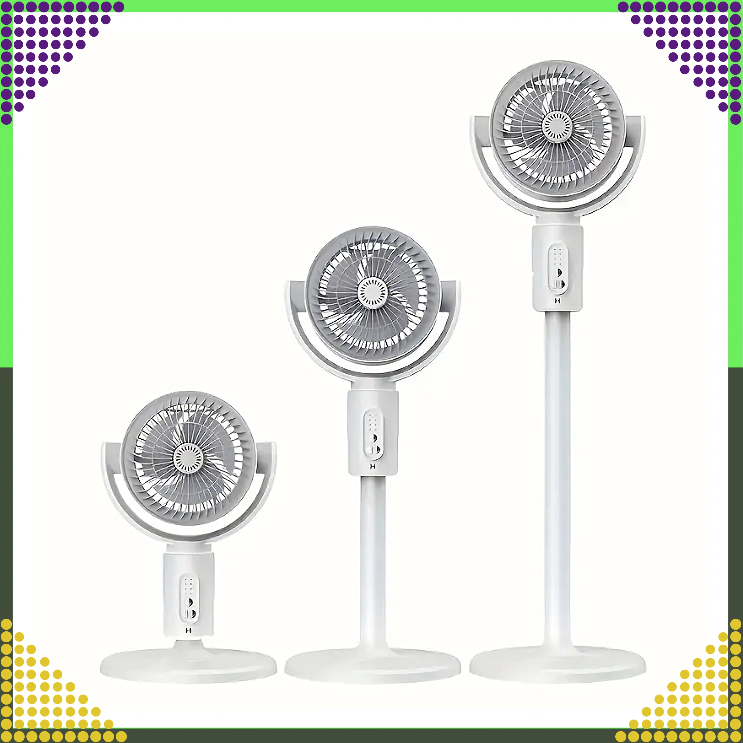 Den trådløse 3-i-1 standventilator er en praktisk løsning til varme dage. Den kombinerer komforten ved fjernbetjening, stille drift og variabel højdejustering fra ca. 38 til 82 cm, så den passer til skrivebordet, stuen og terrassen. Oscillation sikrer jævn afkøling af hele rummet.