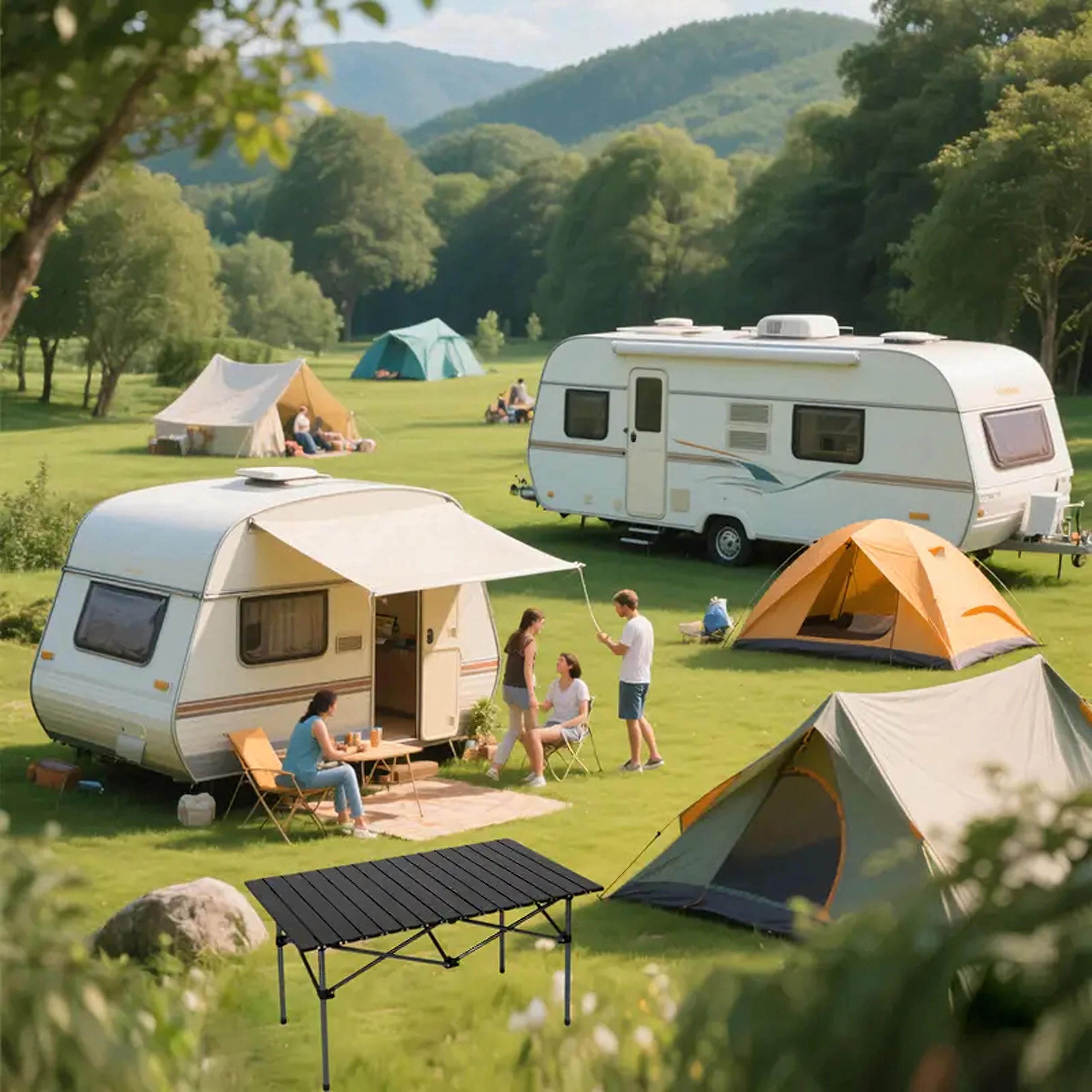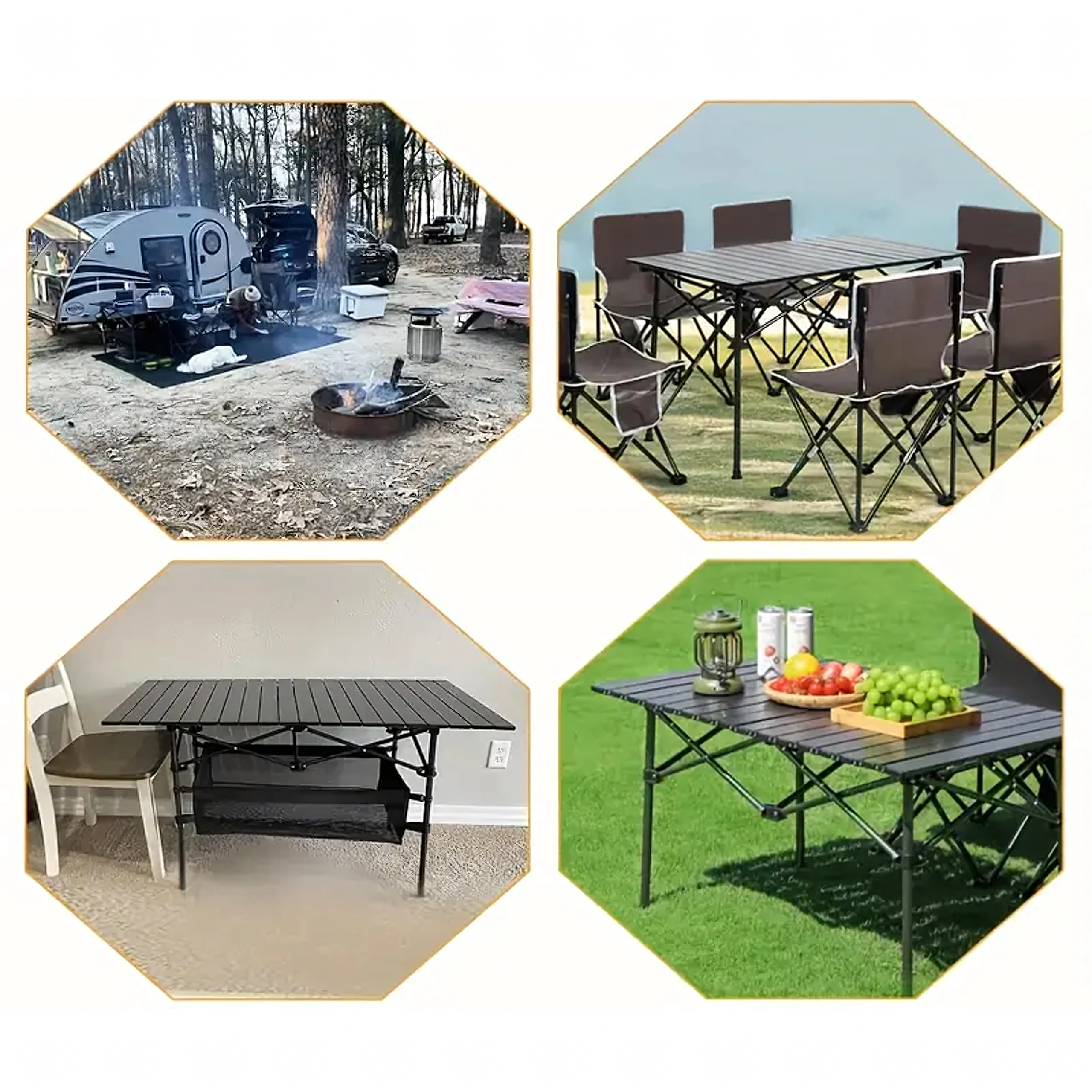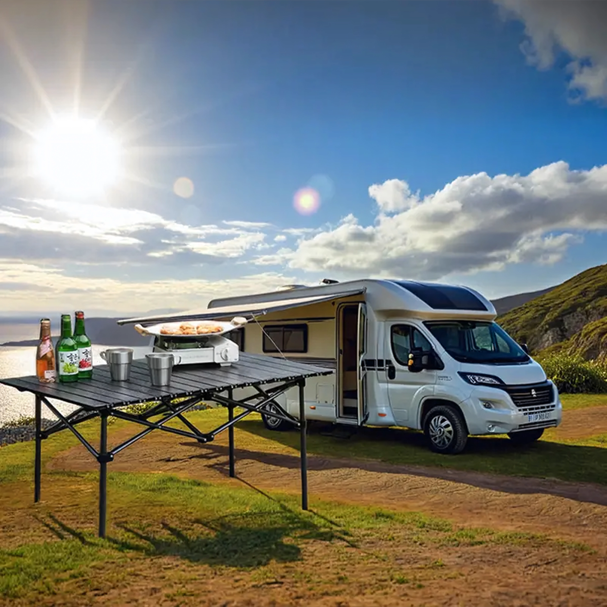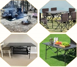 Nyd komforten på camping, i haven eller til picnic med det praktiske sammenklappelige bord. Det er designet til hyppige rejser – det er let, kompakt og nemt at transportere, men giver alligevel stærk og stabil støtte til service, mad og campingudstyr.