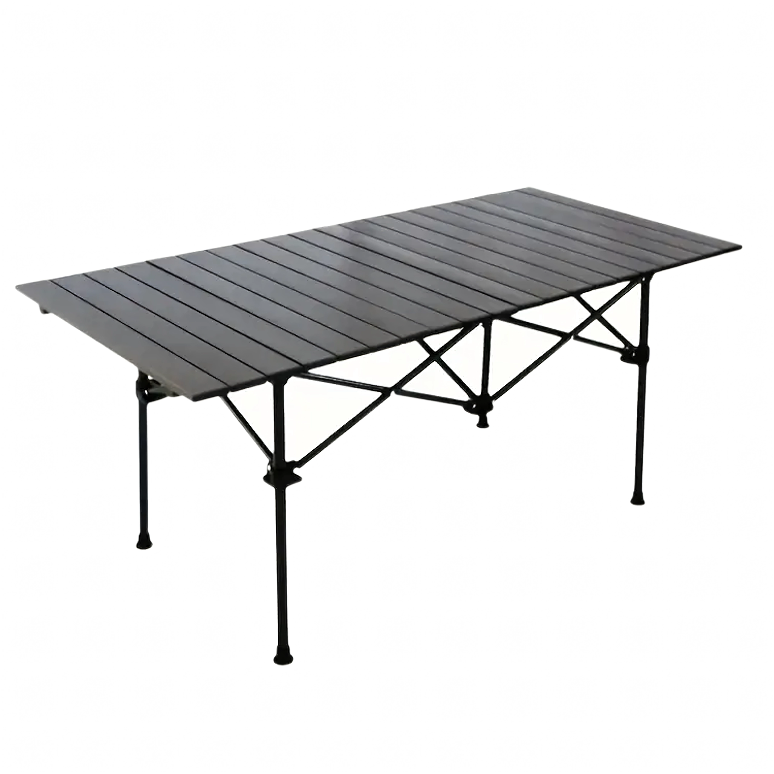 Lamelbordplade og krydsben sikrer styrke selv på ujævnt underlag. Velegnet til servering af mad og madlavning i campen.