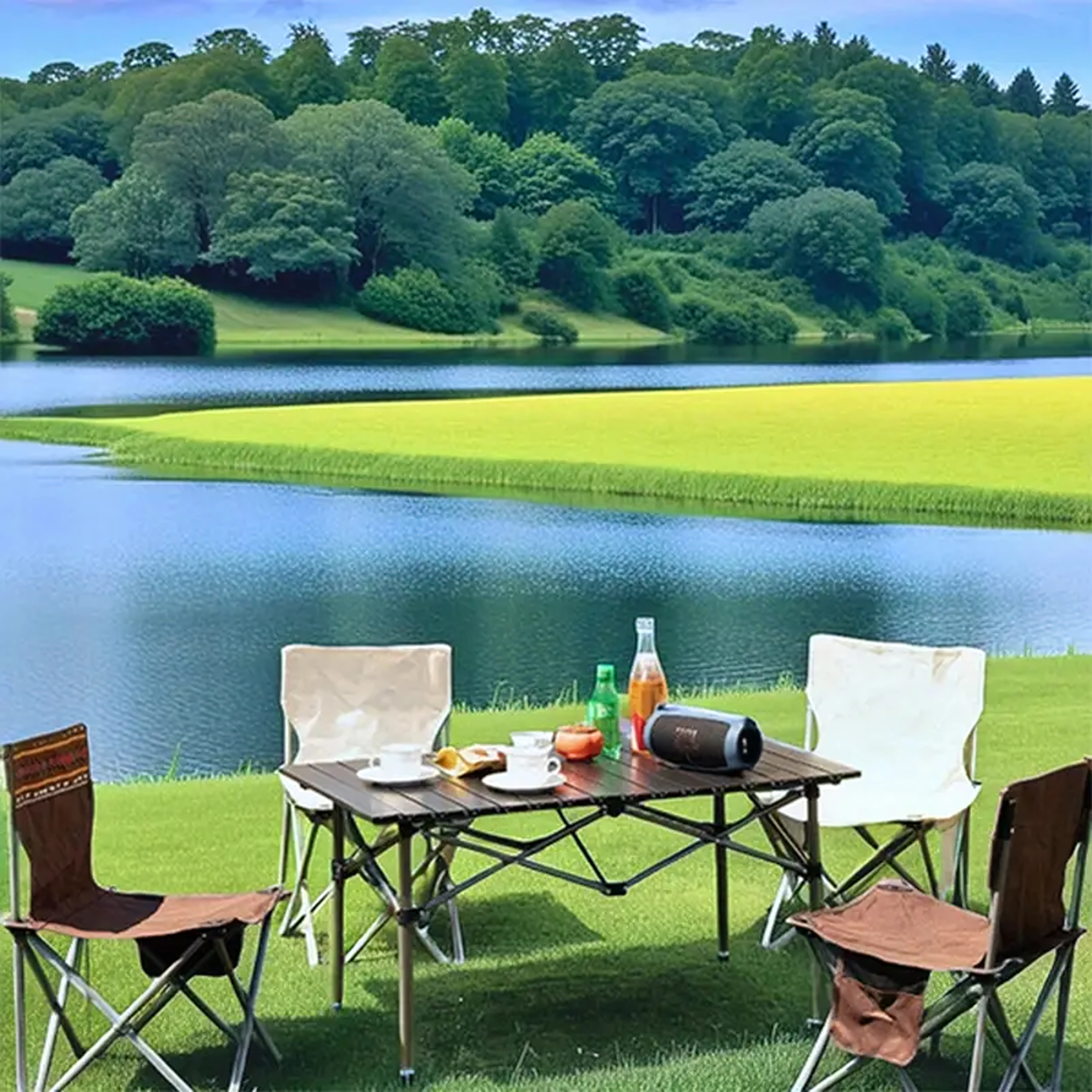 Perfekt til udendørs spisning ved søen, i haven eller i campen. Skaber en komfortabel base for familie og venner.