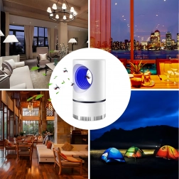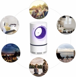 Den moderne UV insektafanger kombinerer effektivt UV LED-lys og en stille sugeventilator. Tiltrukne myg og fluer suges sikkert ind og låses i den nederste beholder uden brug af kemikalier. En ideel løsning til rolig søvn og hyggelige aftener hjemme og på terrassen.