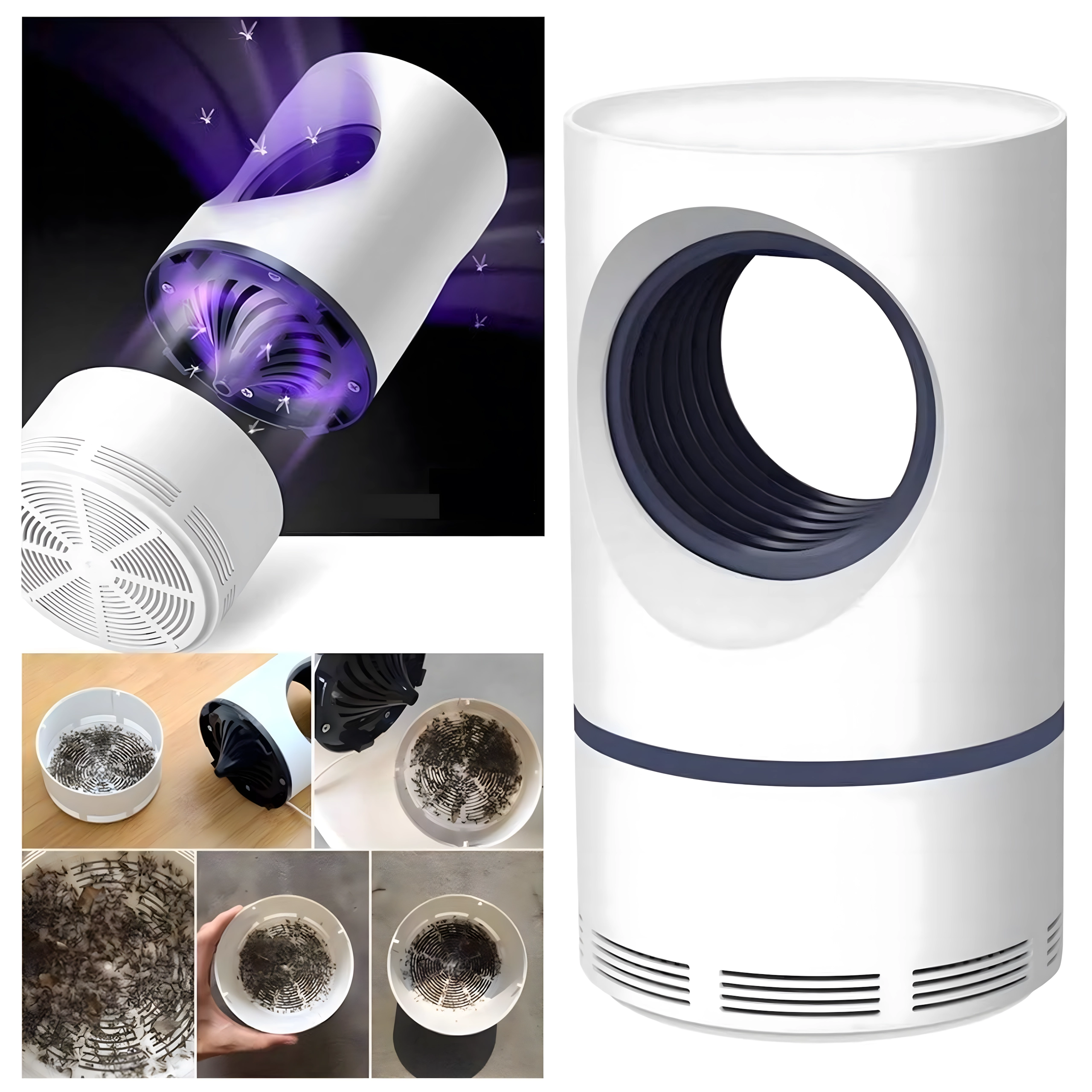 UV-lyset tiltrækker insekter, og den indbyggede ventilator suger dem ind i opsamlingskammeret – uden kemi, uden lugt og uden elektriske stød. Velegnet til soveværelser og nær børn.