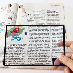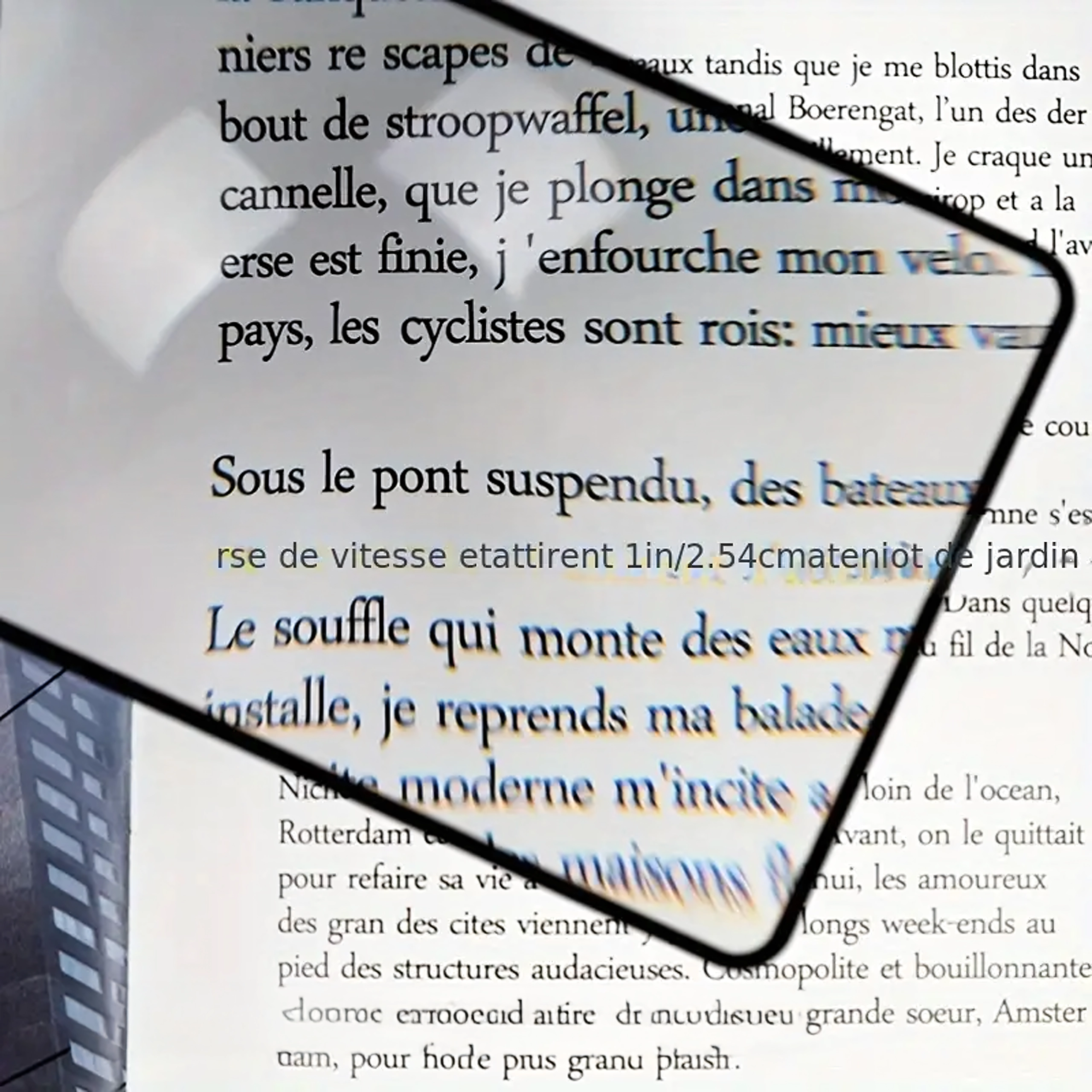 Den rektangulære linse dækker en stor del af siden, så du ser teksten forstørret uden hele tiden at flytte forstørrelsesglasset.