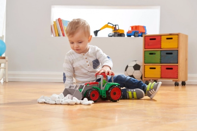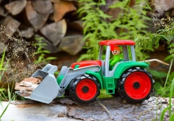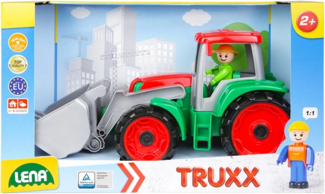 TRUXX traktoren er et holdbart legetøj til hverdagens eventyr. Den bevægelige frontskovl læsser nemt sand, småsten eller klodser, mens vippe-kabinen og den medfølgende figur støtter kreativ leg og finmotorik. Robust og samtidig fleksibel plast uden skarpe kanter er ideel til små børn.