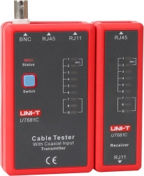 UT681C håndterer ethernet-, telefon- og koaksialkabler. Med RJ45‑BNC‑adapteren tester du let koaksialledninger – fra kontinuitet til ledningskortlægning.