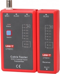 UNI‑T UT681C er en multifunktionel kabeltester designet til hurtig diagnosticering af netværks-, telefon- og koaksialforbindelser. Den tilbyder test af kontinuitet, detektering af kortslutninger, åbne kredsløb og krydsede par, inklusive verifikation af ethernet‑skærmning. Betjening med én knap sikrer enkelhed og pålidelighed i daglig brug.