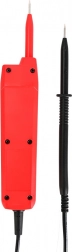 Enheden genkender automatisk veksel- eller jævnspænding og indikerer polaritet (+/−) ved DC med tydelige LED'er.
