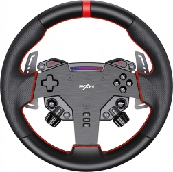 PXN VD4 Bundle F er en komplet løsning til sim racing, der kombinerer en kraftig base med direkte drev, et robust rat og højfølsomme pedaler. Den lav-inertielle flerpolede servomotor leverer et kontinuerligt moment på 4 Nm med hurtig og skarp respons, mens en 24-bit magnetisk sensor registrerer rattets bevægelser i realtid med minimal forsinkelse. Med PXN SimRacing-software kalibrerer og finjusterer du hurtigt alt efter din stil.