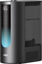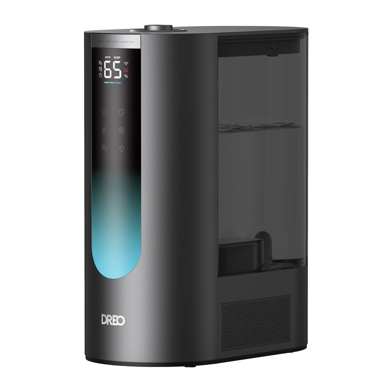 Betjeningen er maksimal bekvem – via Dreo-appen kan du indstille planer, se fugthistorik i op til 30 dage og få påmindelser om rengøring. Enheden understøtter stemmestyring via Google Home og Amazon Alexa. Den praktiske topfyldning gør det nemt at fylde vand på, den dobbelte kassette til æteriske olier giver hurtig duft i rummet, og kompatibiliteten med demineraliseringskassetter reducerer kalkdannelse.