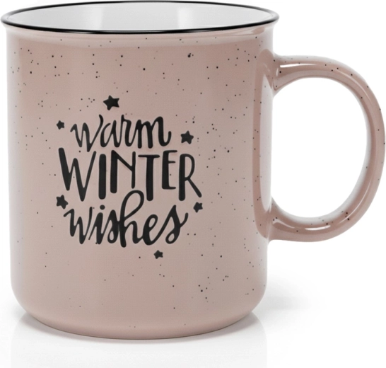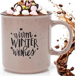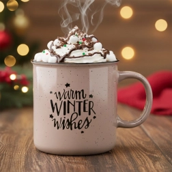 Nyd vinterhyggen med et rummeligt krus i kvalitetsstentøj i moderne beige med plettet effekt og kontrasterende hvid inderside. Det tidløse design, det store hank og den sæsonprægede tekst warm winter wishes skaber den helt rigtige atmosfære til varme drikke.