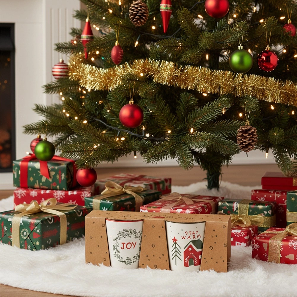 Diskrete sæsonmotiver og kontrasterende røde og grønne detaljer giver hver slurk den rette julestemning.