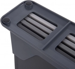 Brætterne er lavet af kvalitetsplast uden porer, er dobbeltsidede og har en specialformet overflade, som hjælper med at opfange safter fra fødevarer. Skridsikre puder på begge sider sikrer stabilitet på bordpladen. Det praktiske stativ med formede riller og skumfødder forhindrer at det glider og beskytter arbejdsfladen mod ridser.