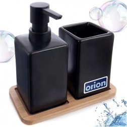 Sættet består af dispenser til flydende sæbe (300 ml), et praktisk krus til tandbørster eller kosmetiske redskaber samt en bambusbakke, som holder alt samlet og beskytter bordpladen mod fugt. Den kvalitetsrige dolomit sikrer stabilitet, holdbarhed og nem rengøring, mens bambus giver en naturlig dekorativ kontrast.