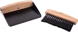 Elegant og praktisk sæt til daglige småoprydninger i køkkenet, på kontoret eller i værkstedet. Den robuste fejebakke i mat sort metal og kosten med bøgehåndtag og tæt sort børste klarer krummer, støv og jord fra urtepotter. Takket være det magnetiske samlingspunkt opbevares begge dele nemt samlet.
