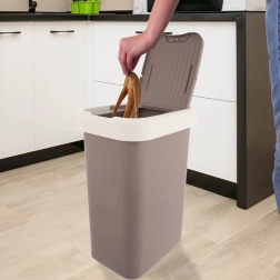 Vippelåget åbner i begge retninger og kan låses i åben position til længere arbejde i køkkenet. Konstruktionen forhindrer effektivt lugtudslip. Spanden er ideel til køkken, badeværelse, kontor, venteværelse eller hjemmekontor.