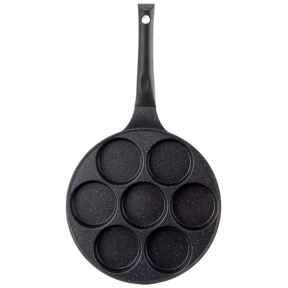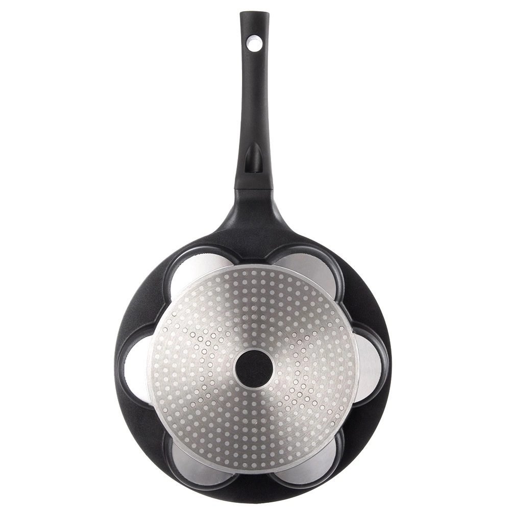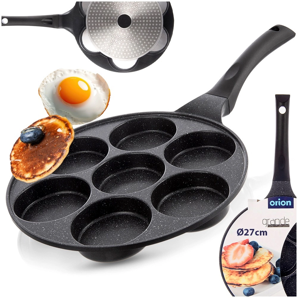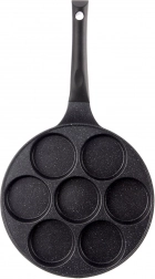 Denne stilfulde pande med non-stick granitbelægning er ideel til hurtig tilberedning af morgenmad og snacks. Takket være de syv runde forme får du altid ens portioner med perfekt form – fra spejlæg til små pandekager og mini crêpes. Det aluminiumsbaserede korpus med granitbelægning PFLUON GRANIT muliggør sundere stegning med minimal olie og gør rengøringen lettere.