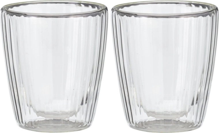 Nyd din yndlings macchiato, caffe latte, americano eller te i glas, der kombinerer moderne design og praktisk funktion. Den dobbelte væg isolerer temperaturen, så varme drikke ikke brænder i hånden, og kolde forbliver forfriskende længere. Det gennemsigtige borosilikatglas fremhæver lagdelte kaffedrikke og farverige teer.