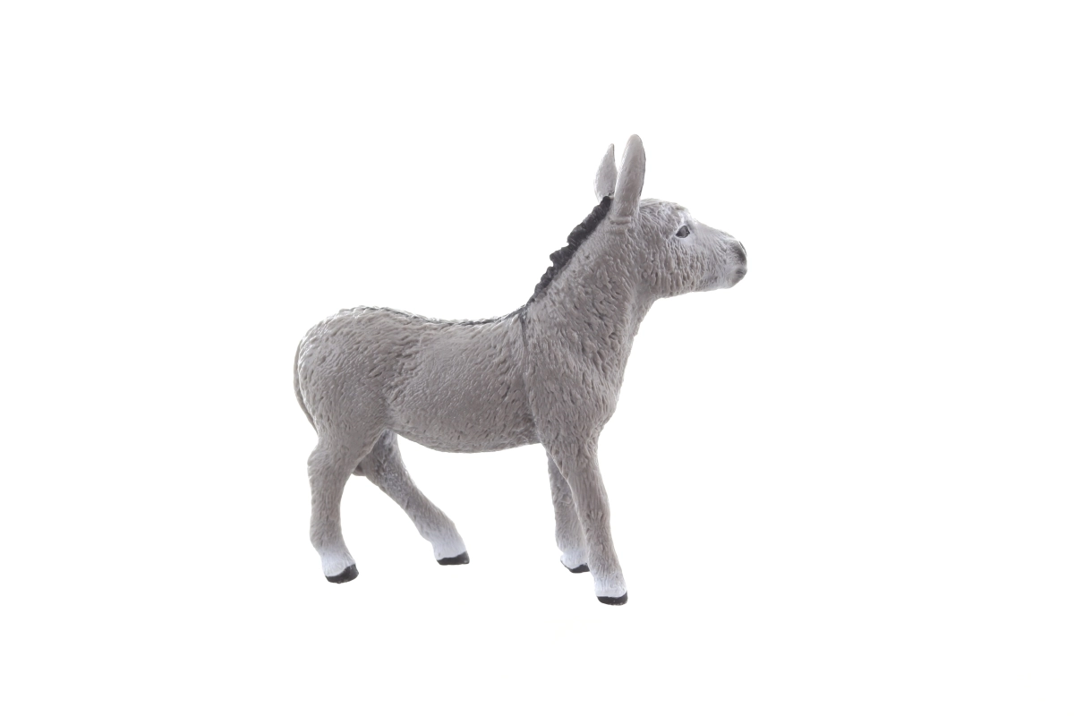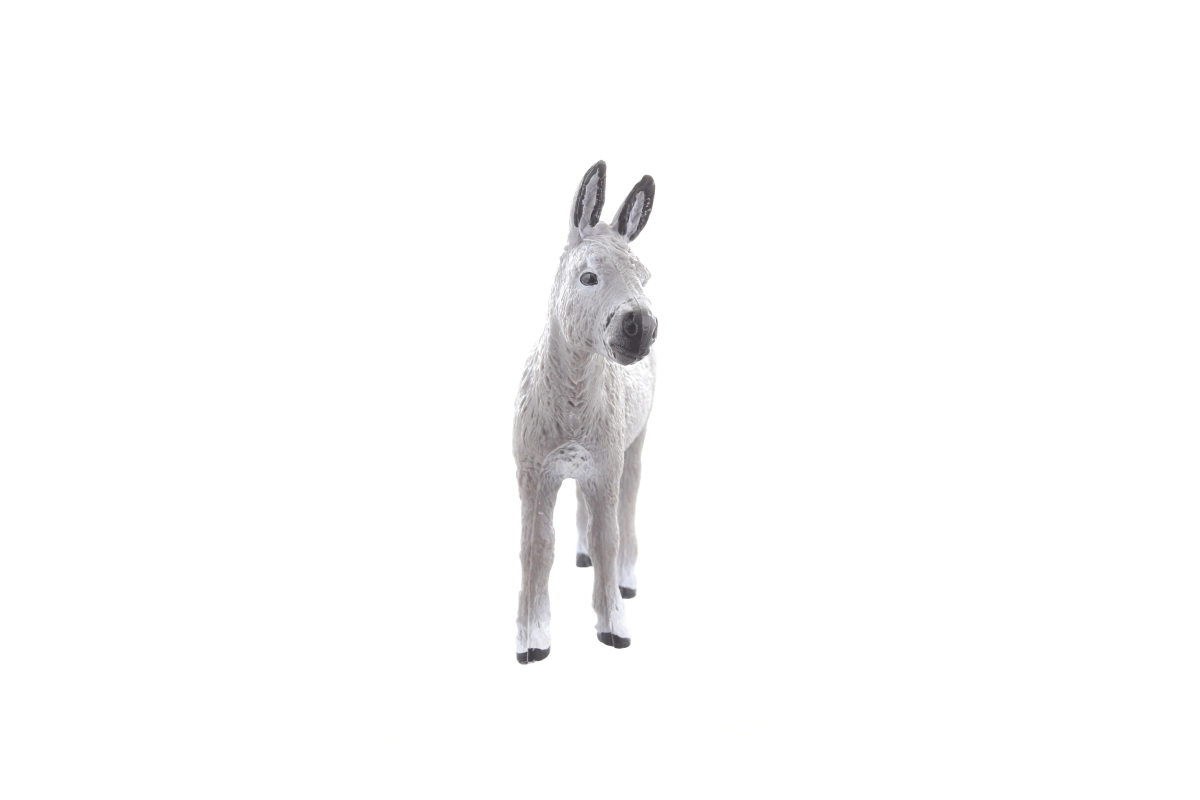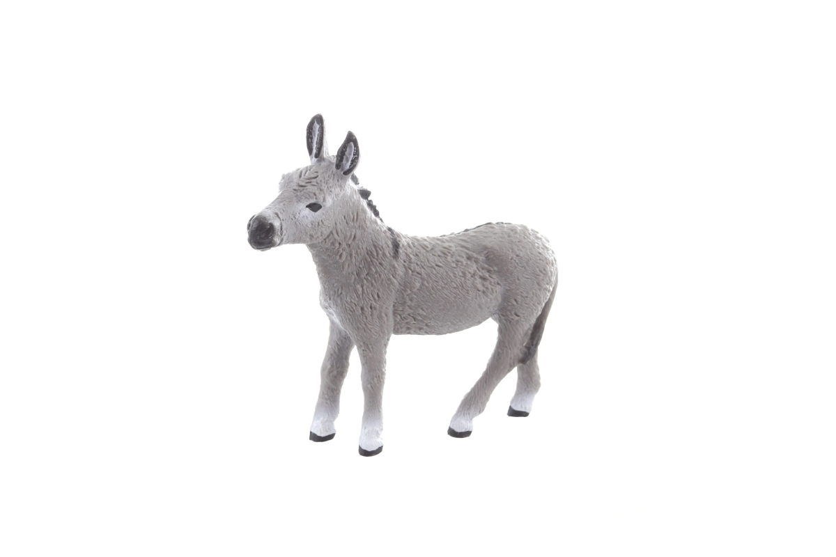 Denne plastfigur af et æsel med mål på cirka 9 × 9 × 3 cm er designet med fokus på realistisk formgivning og håndmalede detaljer. Takket være det holdbare materiale tåler den børns leg og egner sig til fantasifuld leg, opbygning af gårde eller undervisningsprojekter.